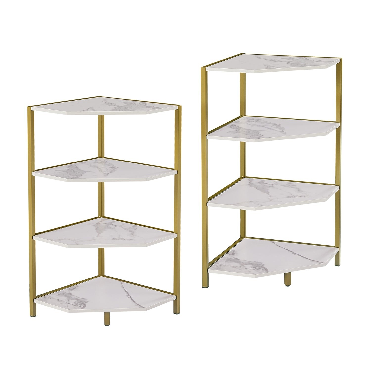 Javlergo Set of 2 Corner Shelf, Freestanding 4-Tier Wood Storage Rack