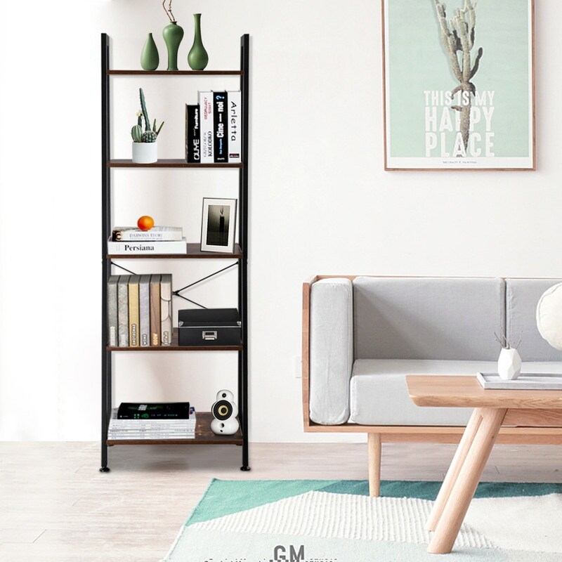 5 Tiers Industrial Ladder Shelf, Vintage Bookshelf, Storage Rack Shelf