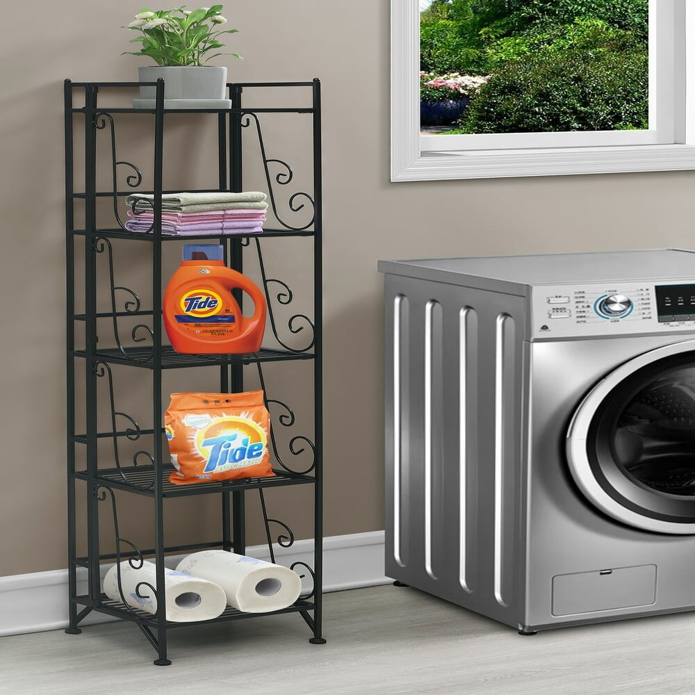 Xtra Storage 5 Tier Folding Metal Shelf with Scroll Design, Black