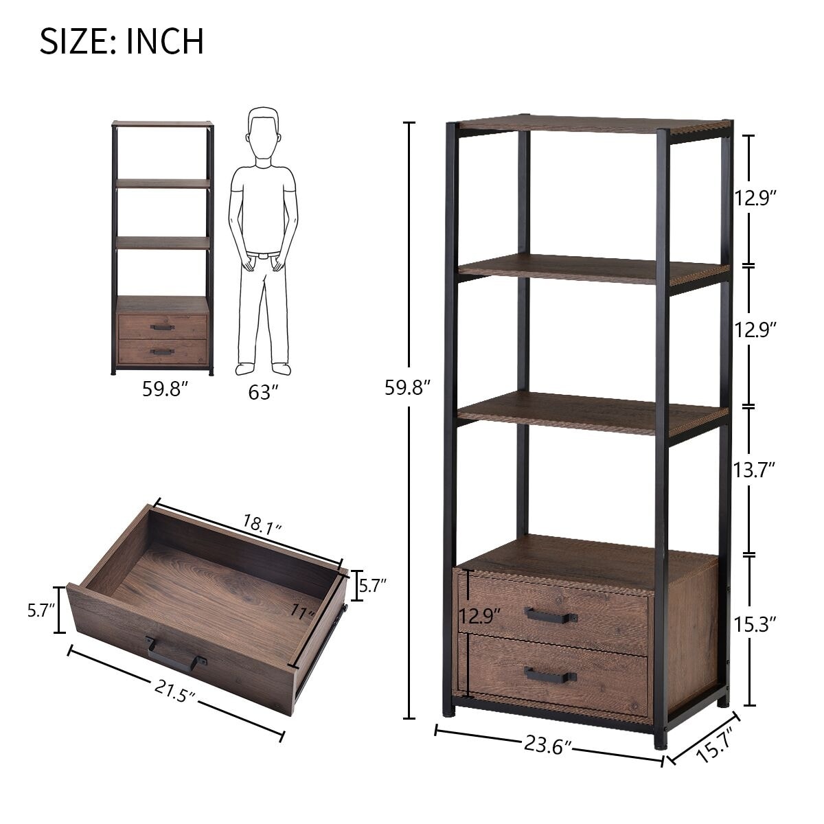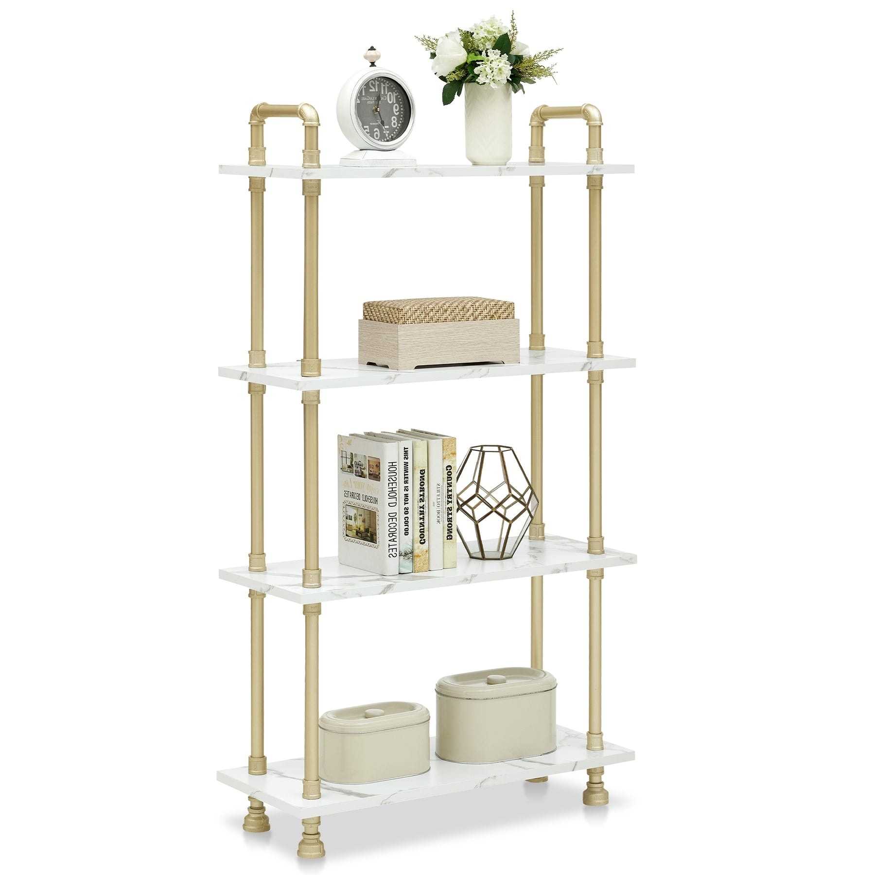 Home Office 4-Tier Bookshelf, Simple Industrial Bookcase Standing Shelf Unit Storage Organizer