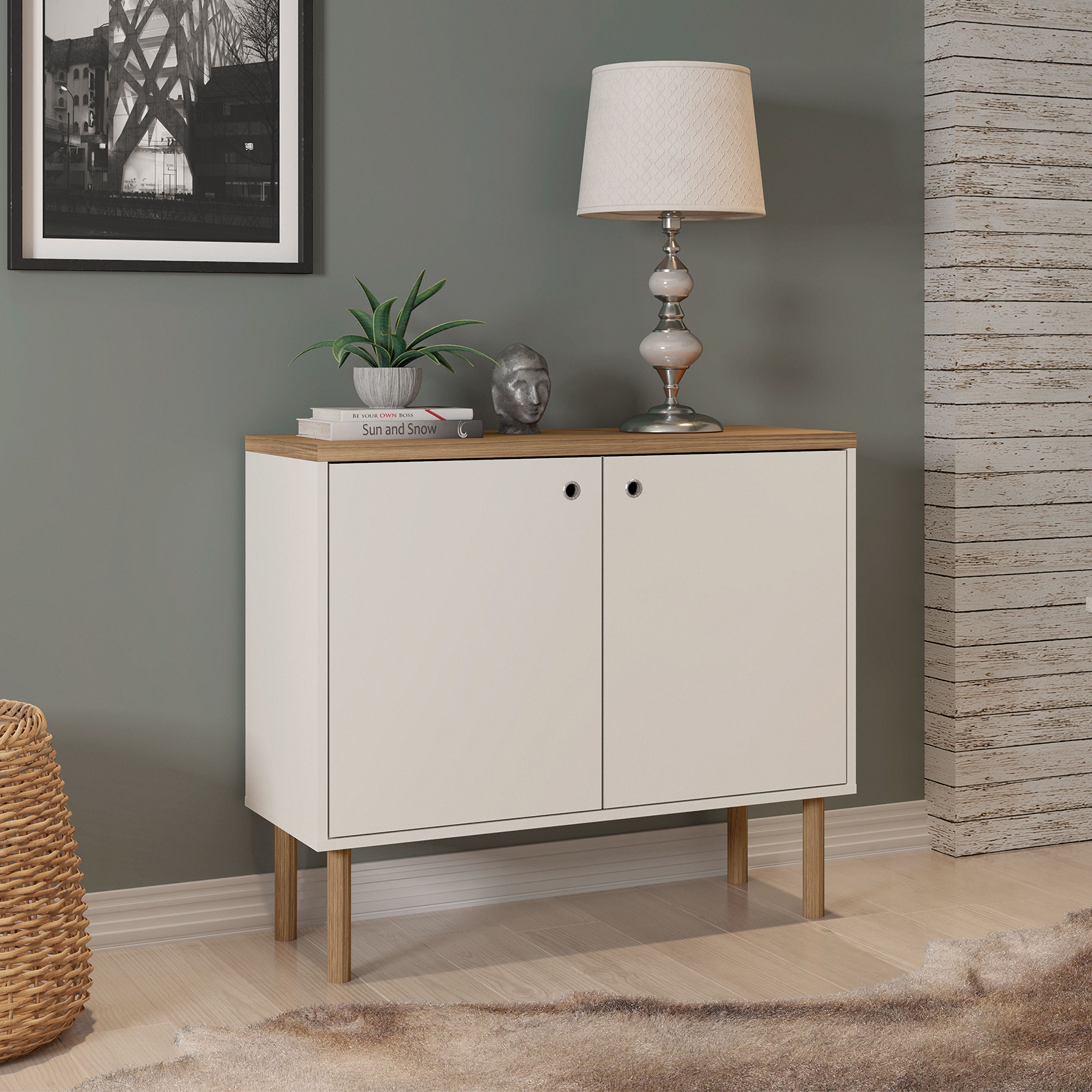 35 Inch 2 Door Wooden Storage Cabinet, Rectangular, 1 Shelf, White, Brown
