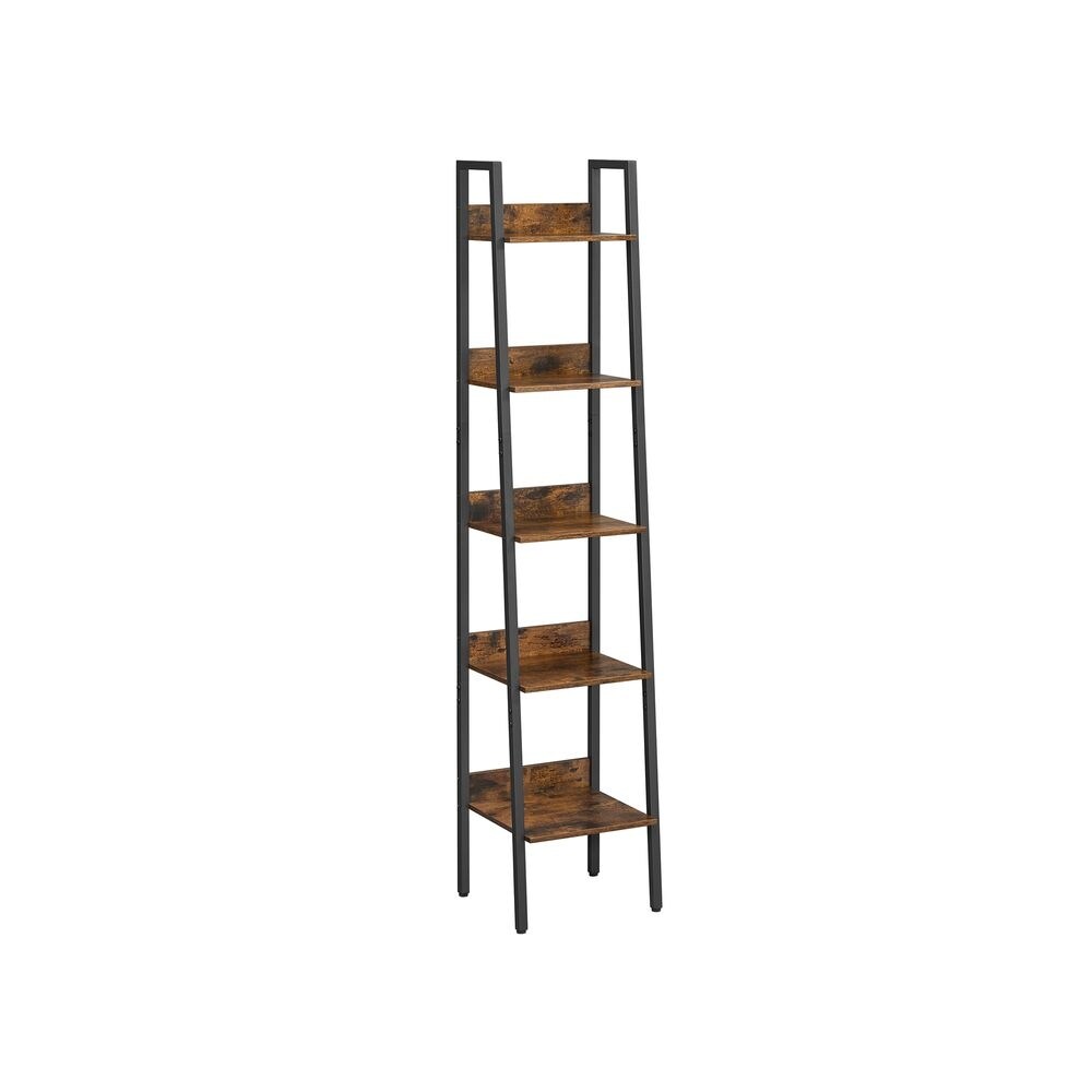 Bookshelf, Ladder Shelf 5-Tier, Freestanding Storage Shelves, Steel Frame, Rustic Brown and Black - 13.3″L x 11.8″W x 66.9″H