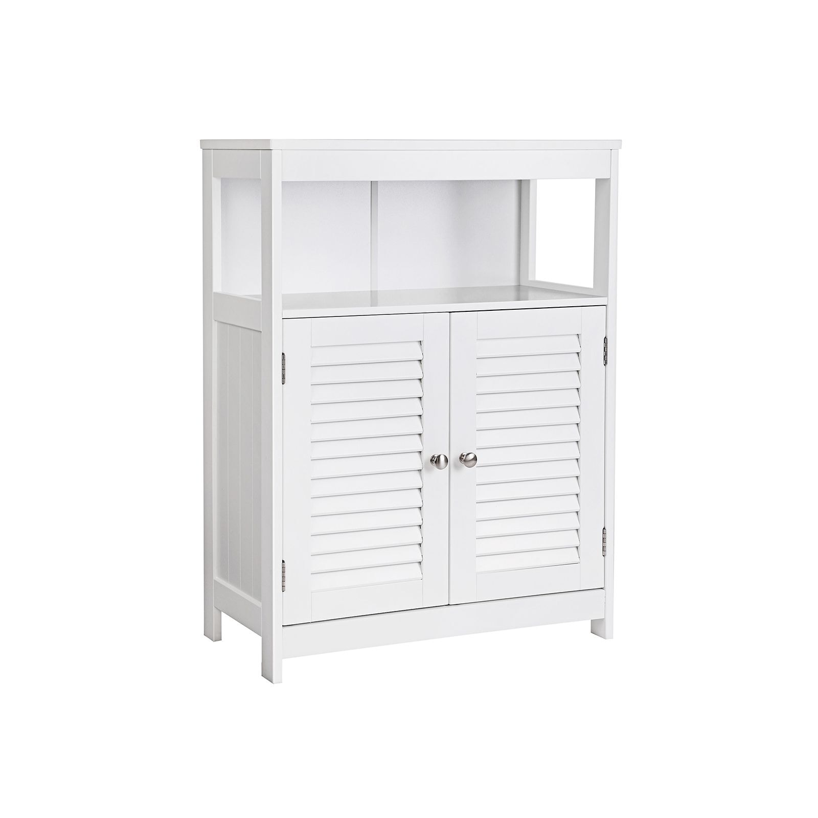 Bathroom Storage Floor Cabinet Free Standing with Double Shutter Door and Adjustable Shelf White