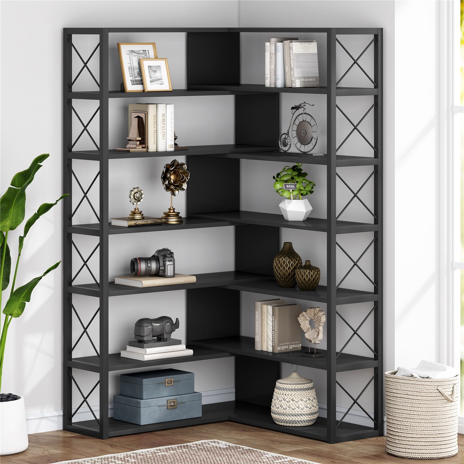 6-Tier Corner Bookshelves, Industrial Corner Etagere Bookcase, Open Storage Corner shelf