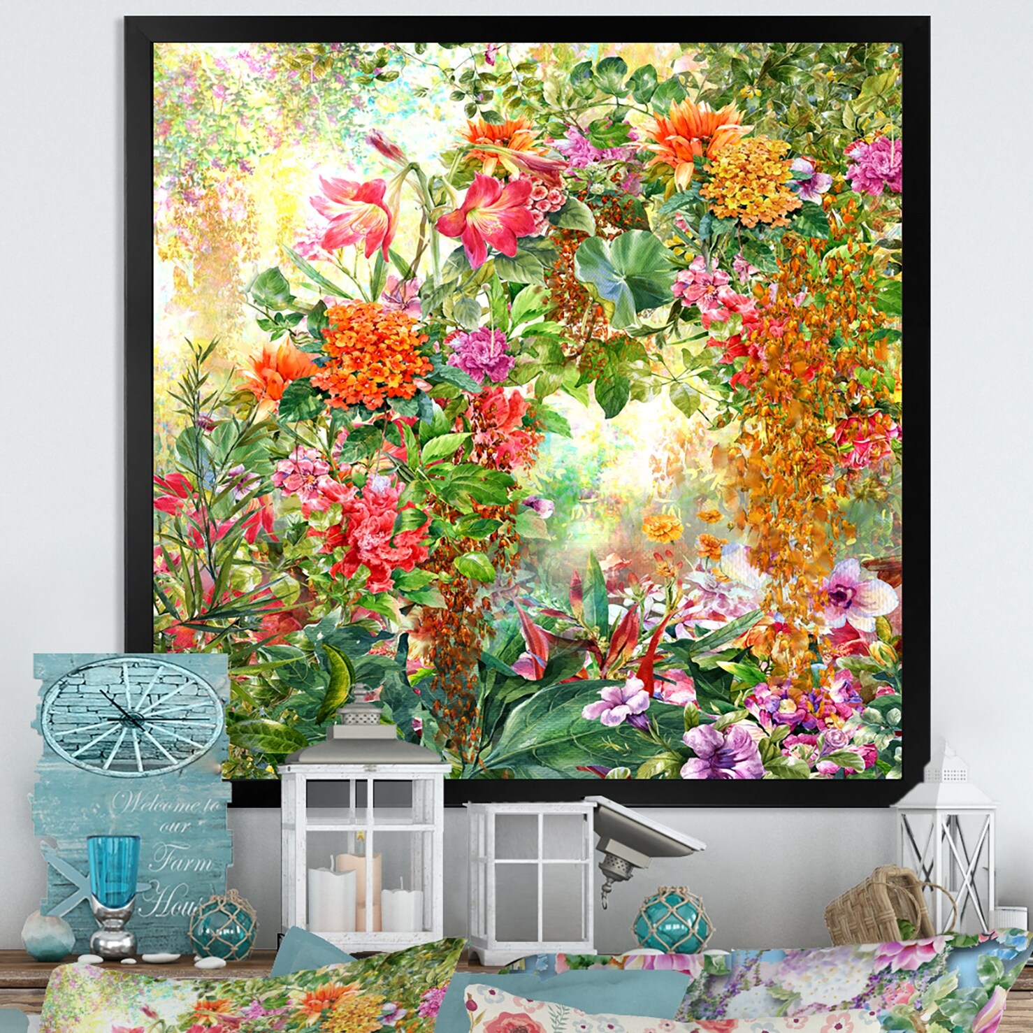 Designart "Garden in Full Bloom on Summer Day" Flowers Framed Canvas Wall Artwork Print