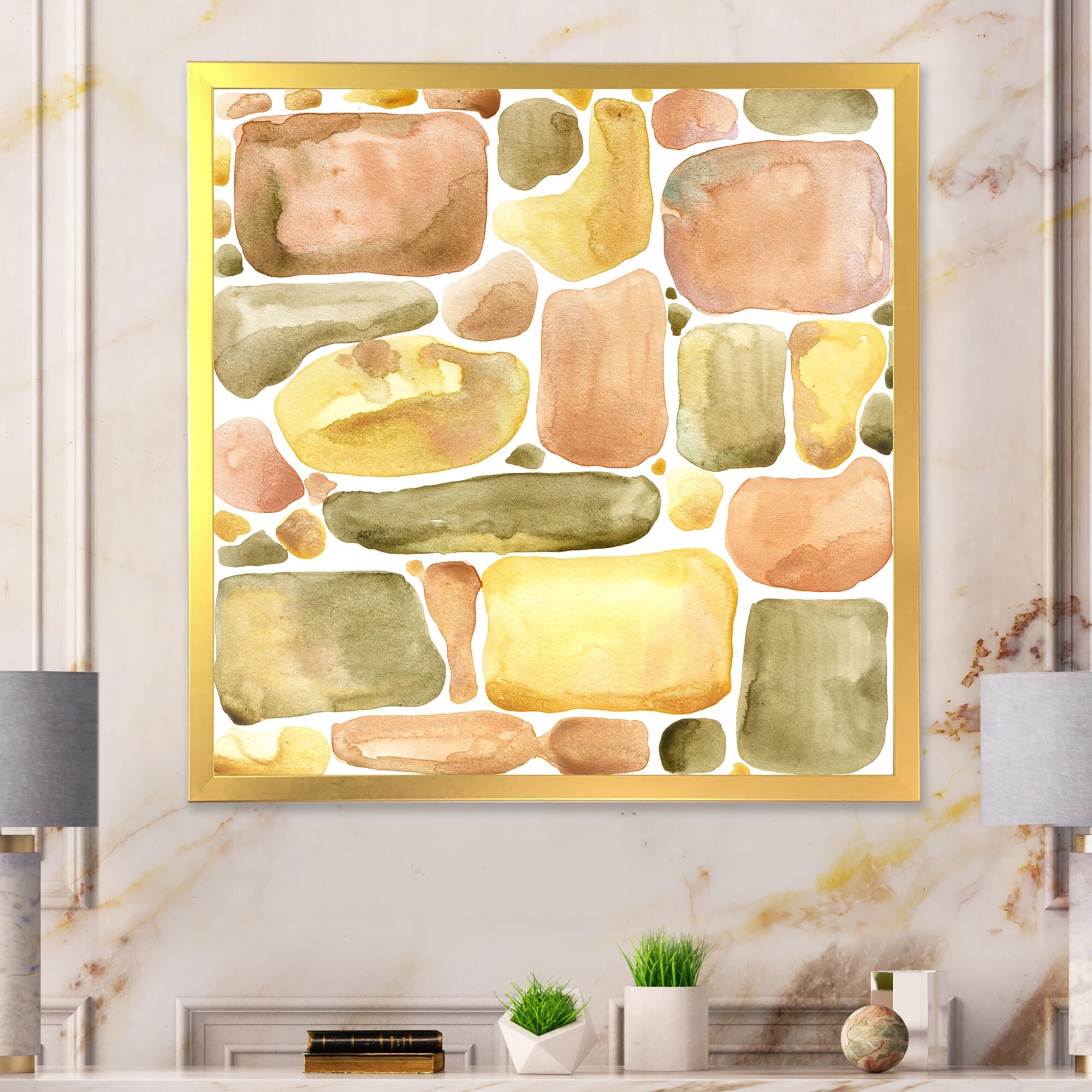 Designart "Pastel Summer Stone Ornament II" Modern Framed Art Print