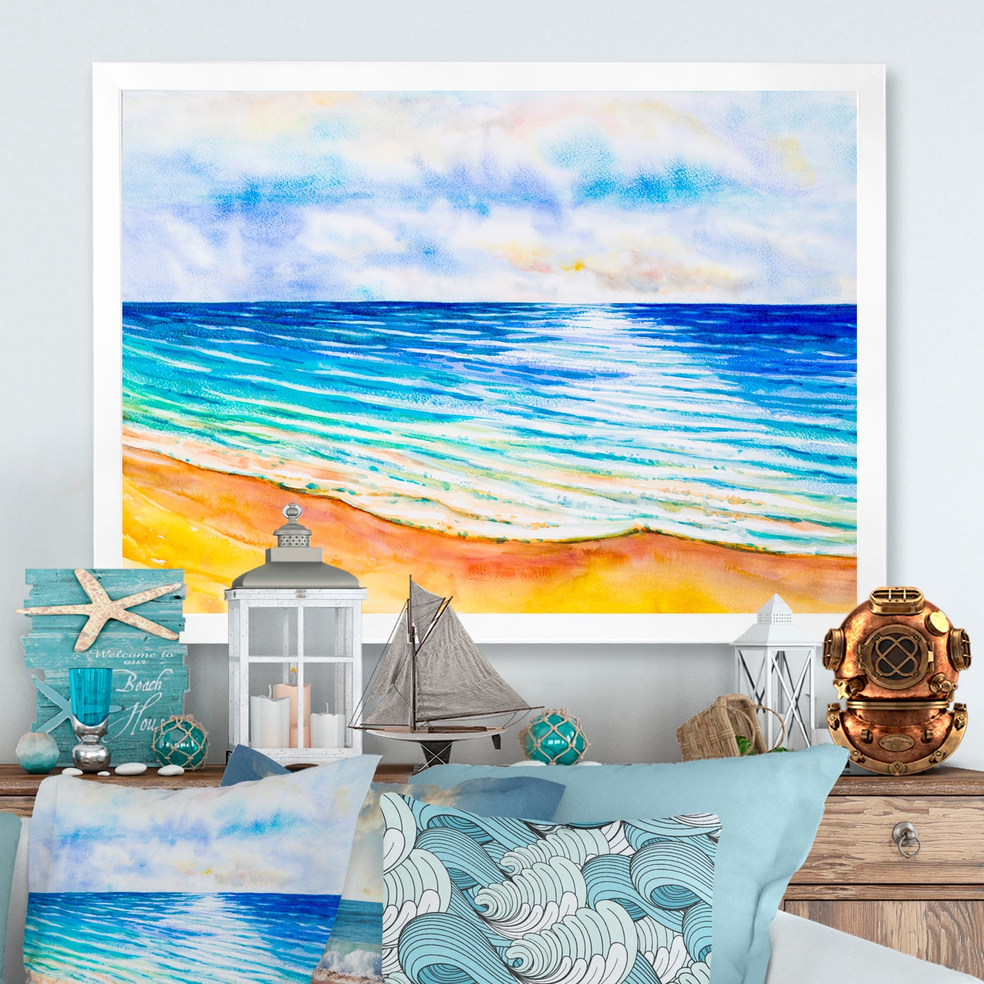 Designart "Coastal Horizon on Summer Scenery" Nautical & Coastal Framed Wall Decor