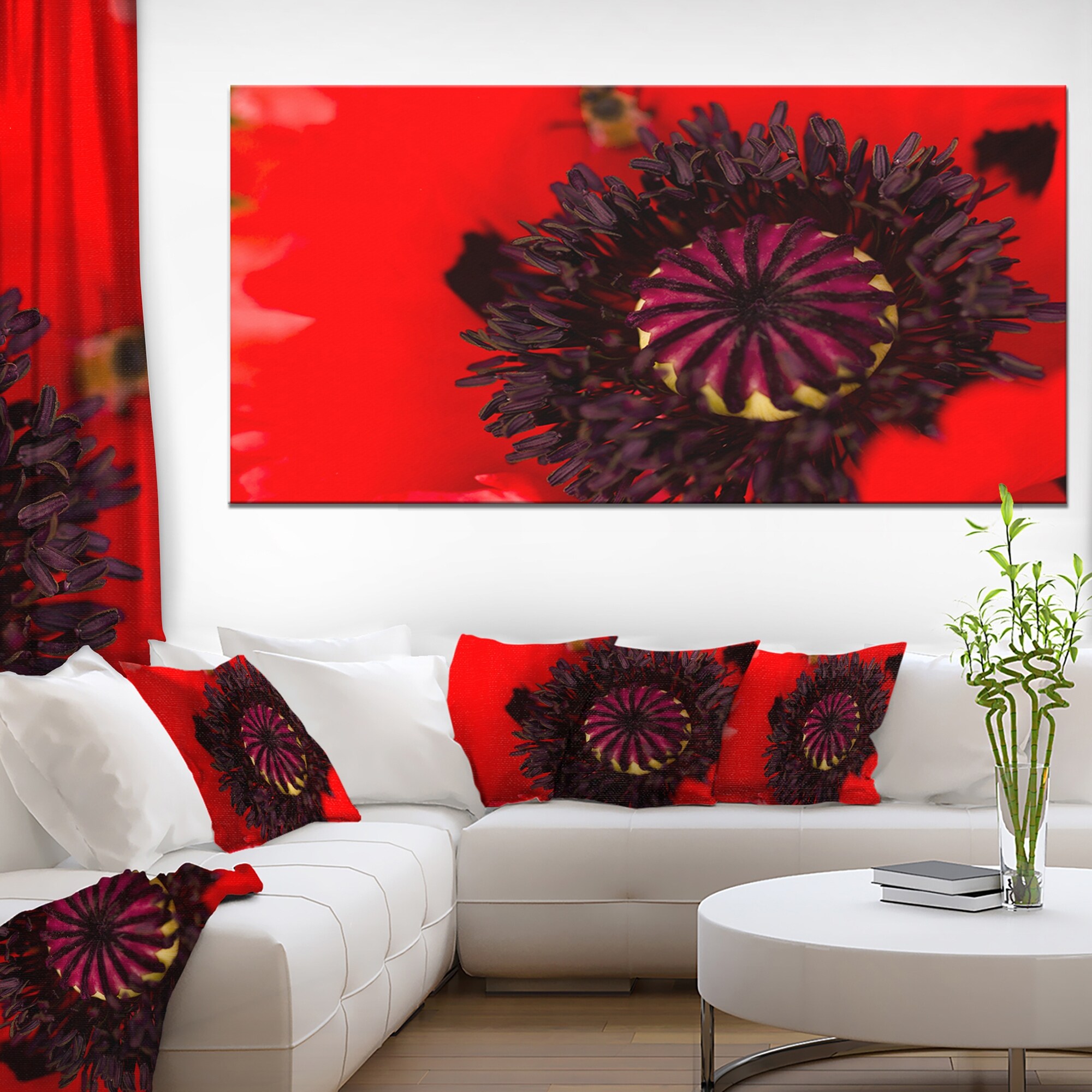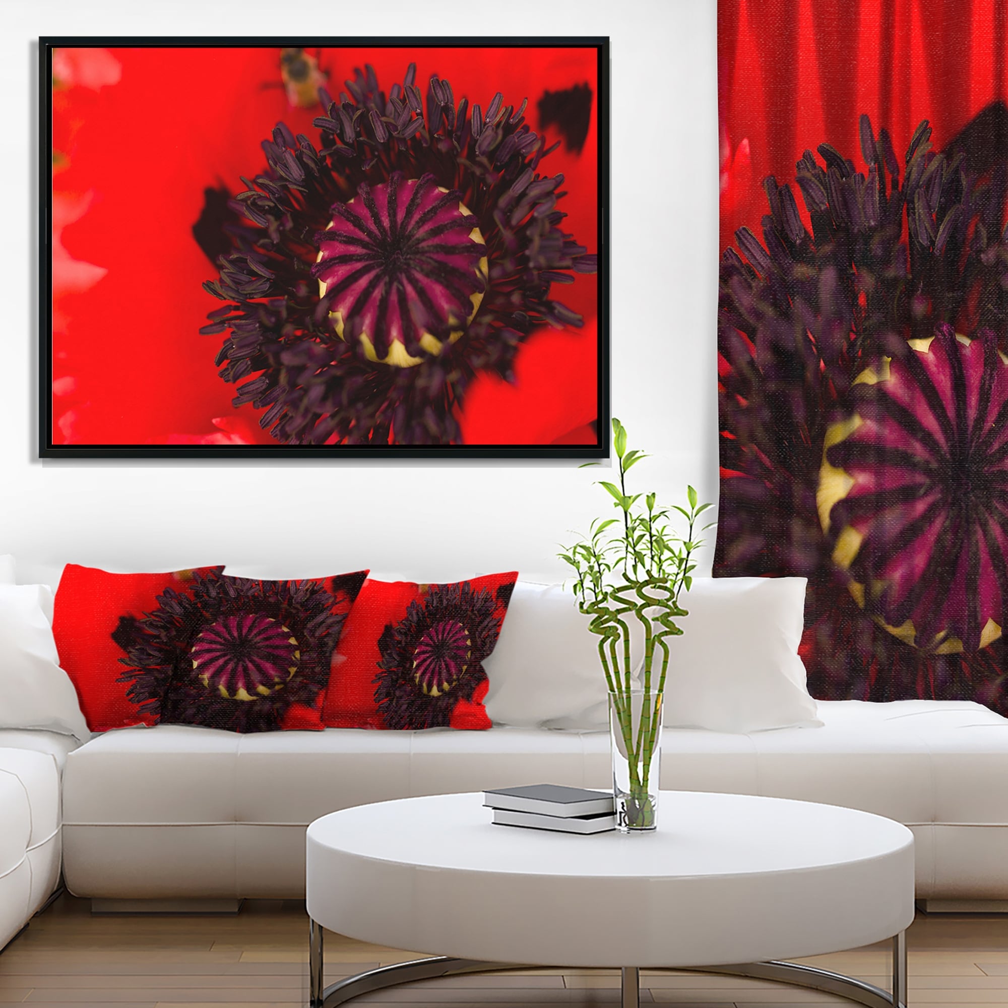 Designart "Modern Red And Green Summer Garden III" Farmhouse Framed Canvas Art Print