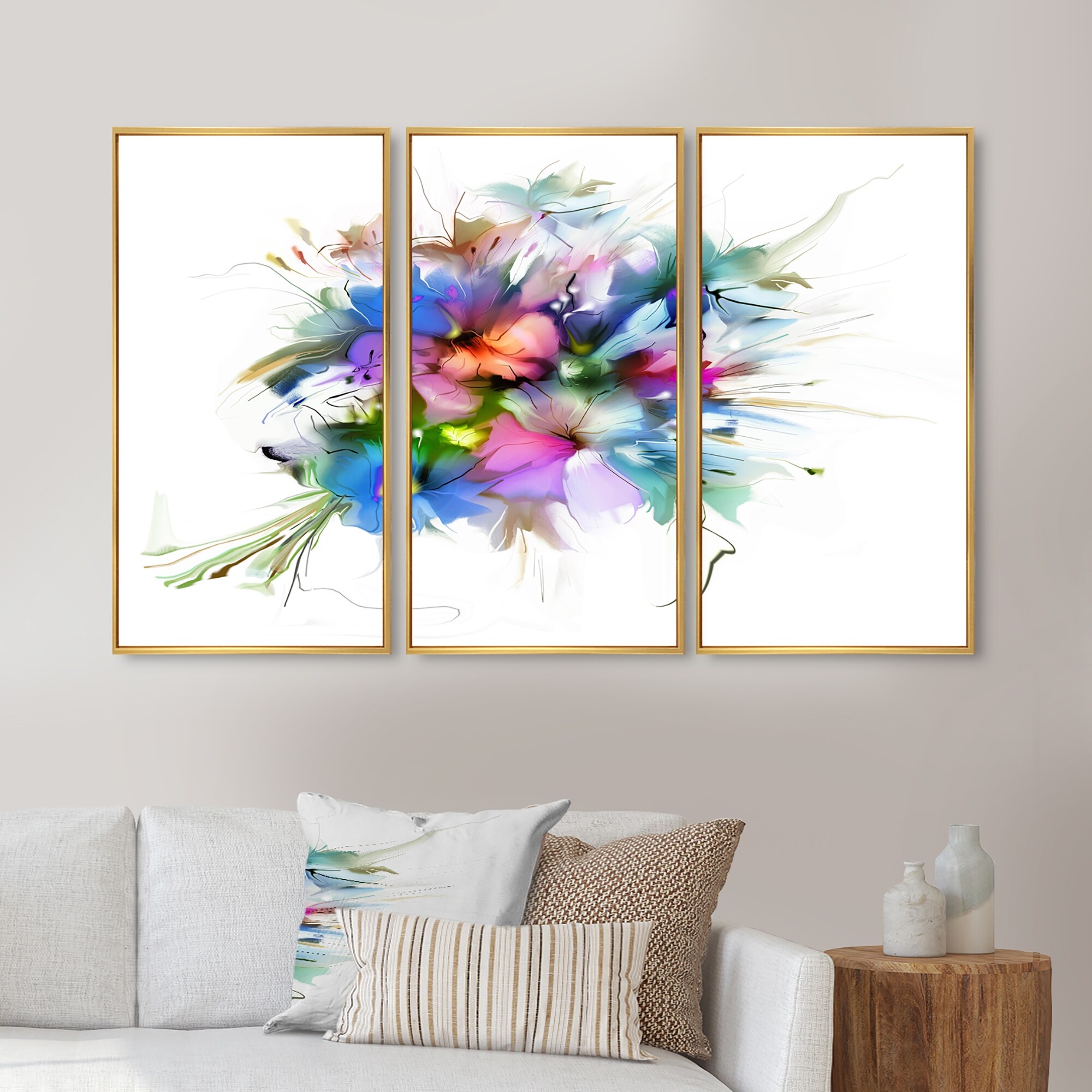 Designart "Summer Colorful Flowers" Floral Framed Wall Decor Set of 3 - 4 Colors of Frames