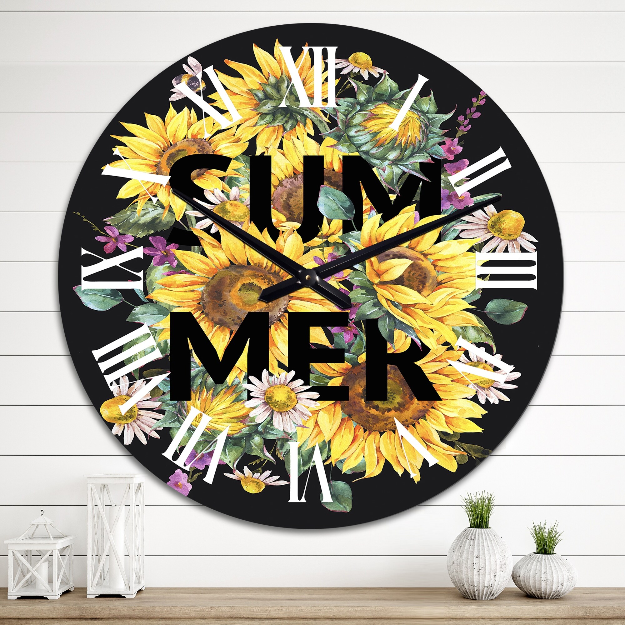 Designart 'Vintage Summer Sunflowers Bouquet' Traditional wall clock