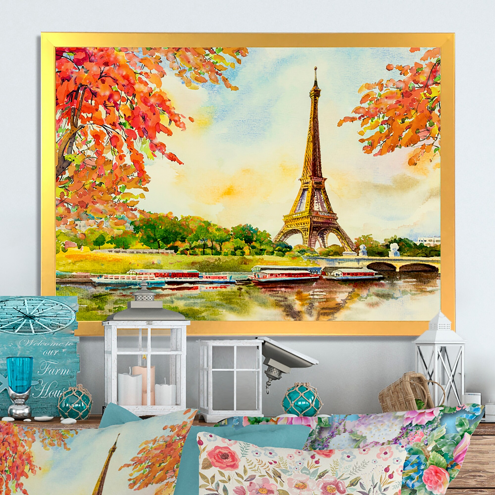 Designart "Paris Eiffel Tower in Beaufitul Summer III" French Country Framed artwork