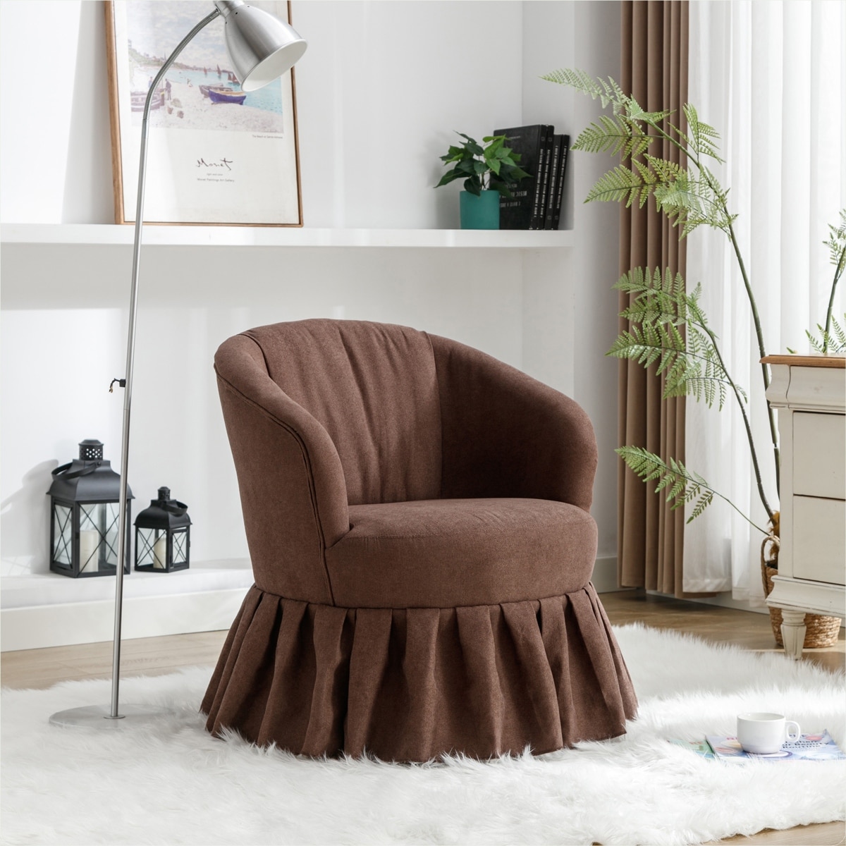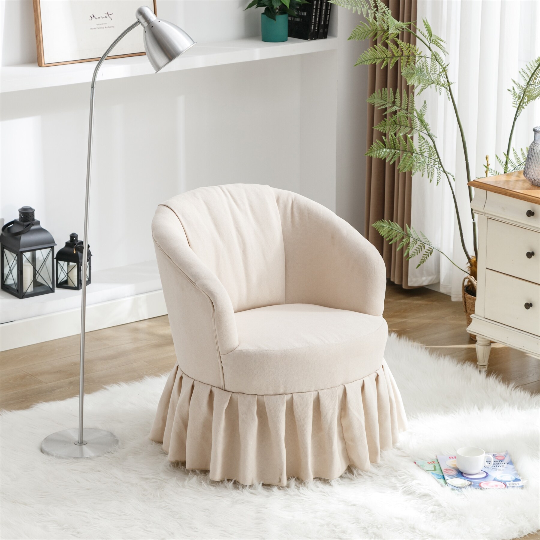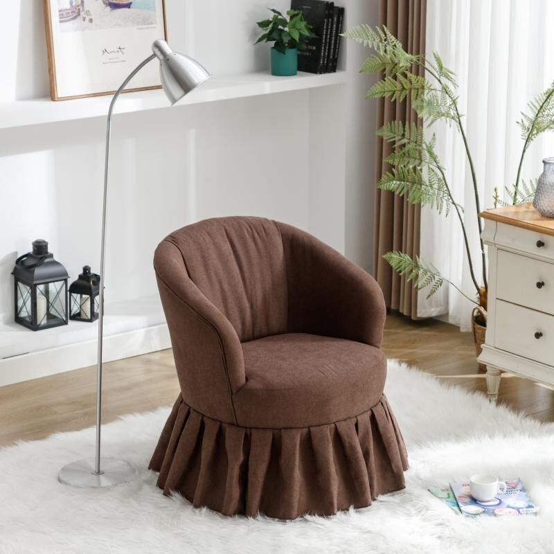 Linen Fabric Accent Swivel Chair with Pleated Skirt