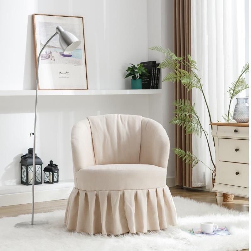 Linen Fabric Accent Swivel Chair Auditorium Chair With Pleated Skirt