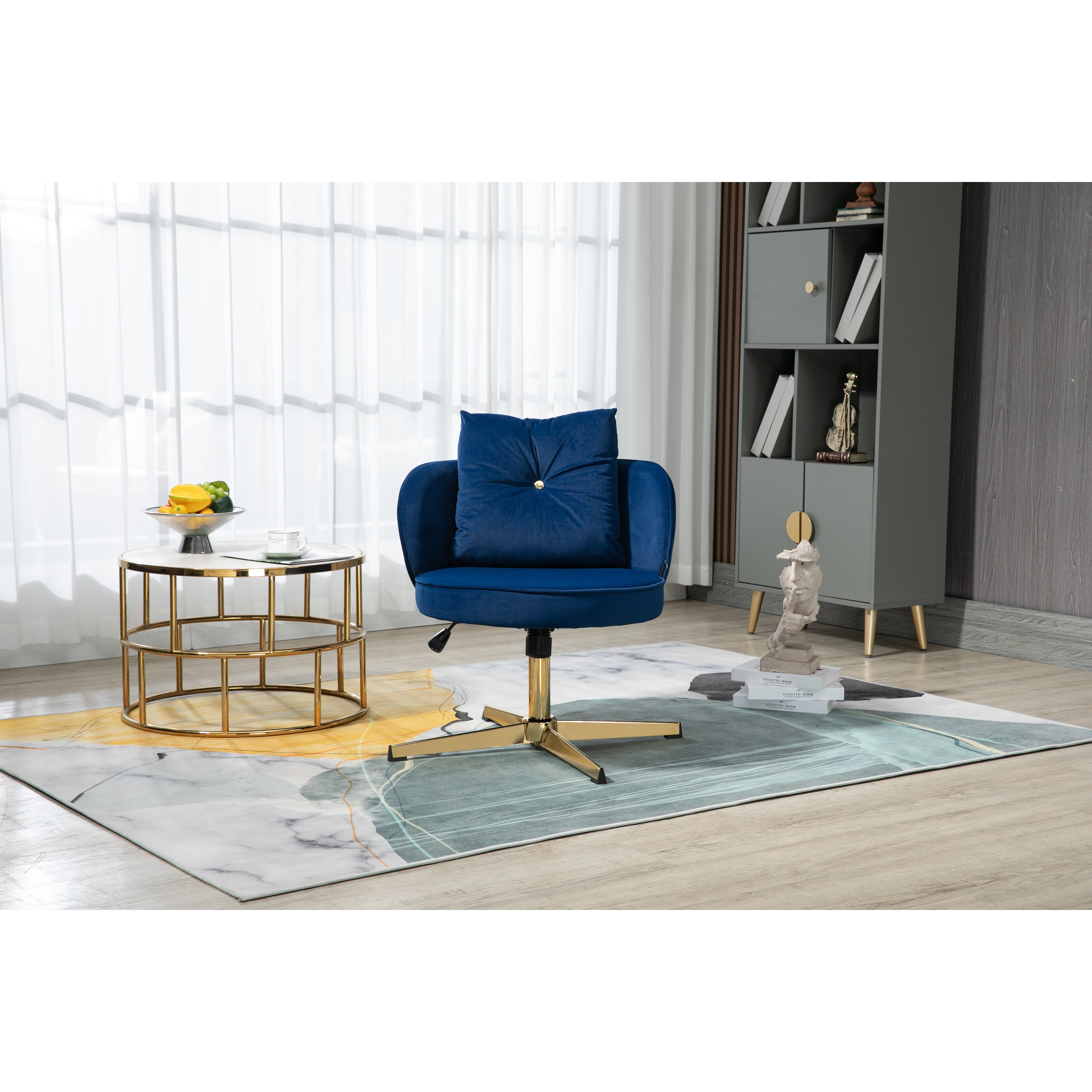 Versatile Accent Chair Vanity Chair, Modern Swivel Chair Adjustable Chair, Blue