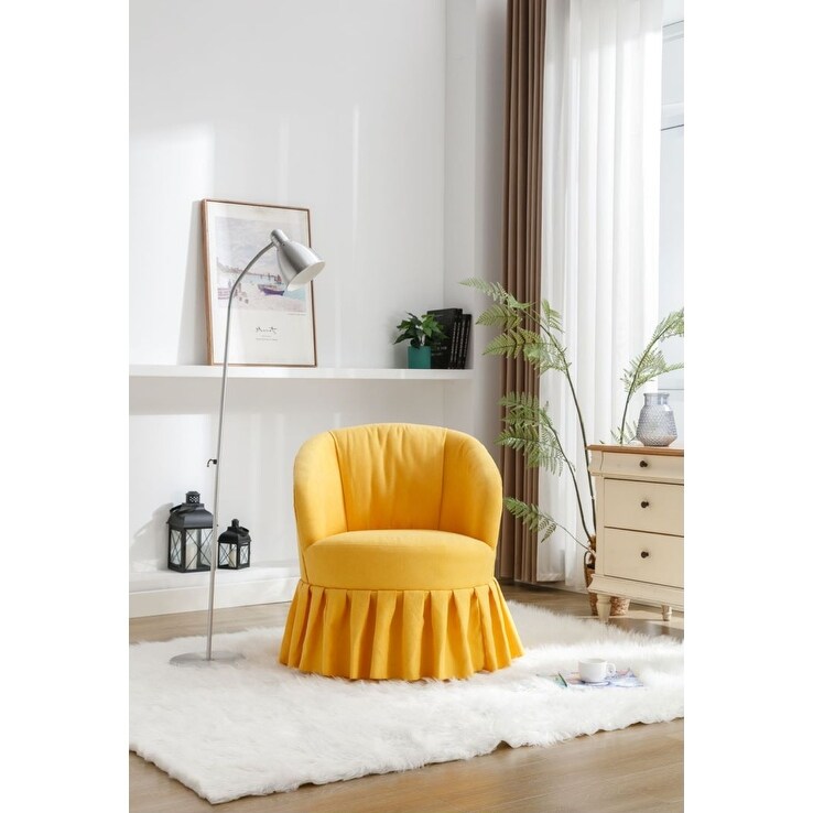 Yellow Fabric Accent Swivel Chair Auditorium Chair With Pleated Skirt