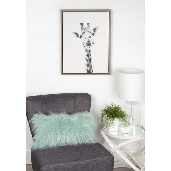 Kate and Laurel Sylvie Giraffe Animal Print Black and White Portrait Framed Canvas Wall Art by Simon Te Tai, 18x24 Gray