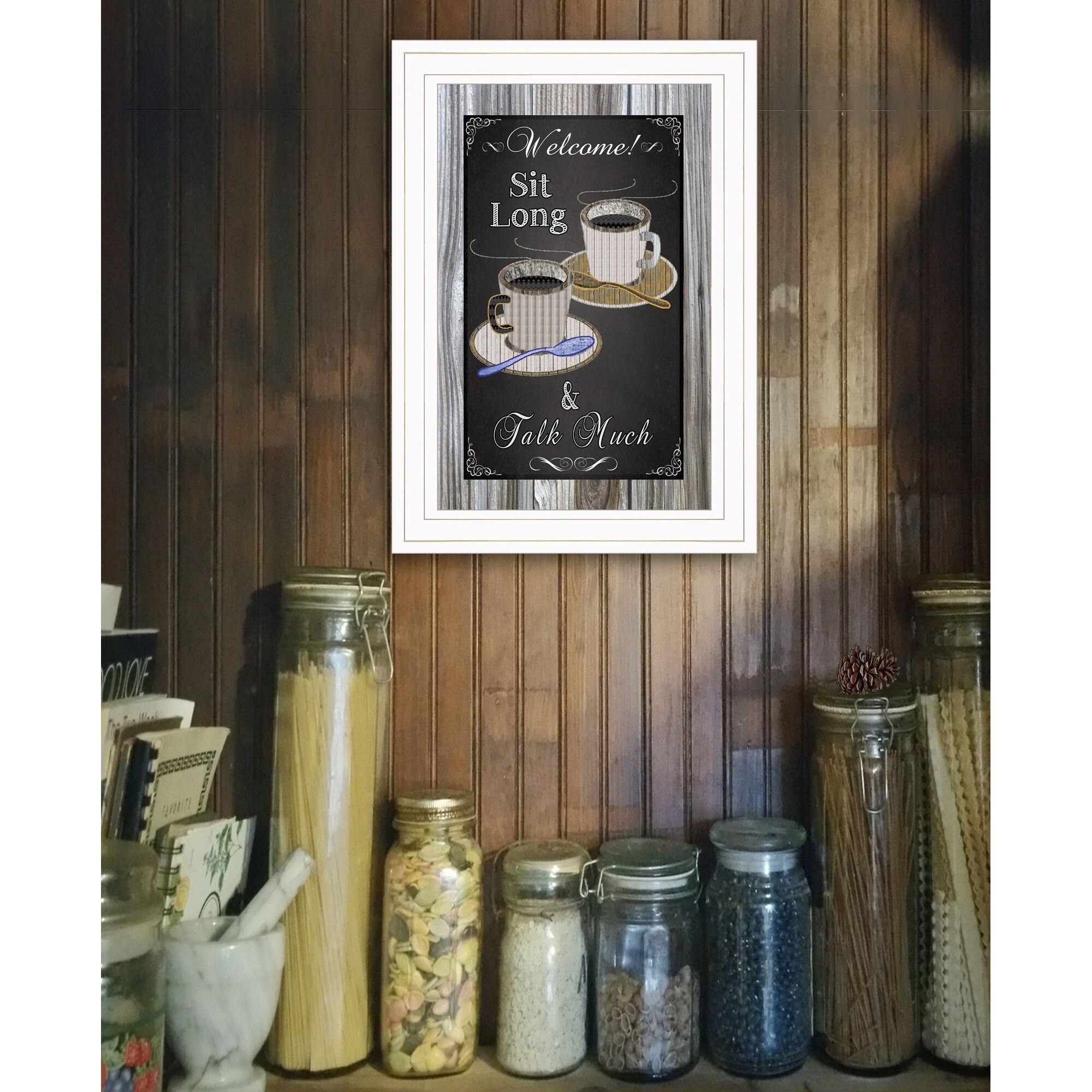 "Sit Long, Talk Much" Chalkboard framed ByTrendy Decor 4U, Ready to Hang Framed Print, White Frame