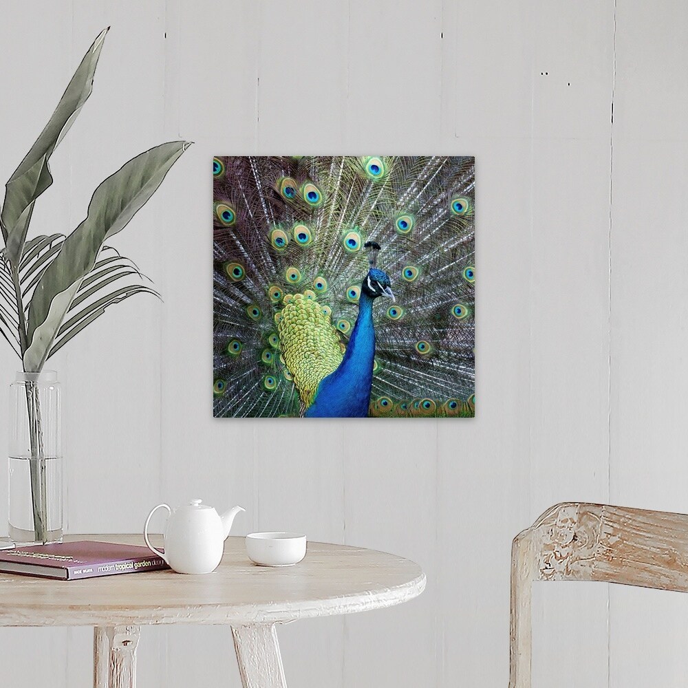 Great Big Canvas "Close up of peacock showing its beautiful feather." White Blue Wrapped Canvas Print Wall Artwork