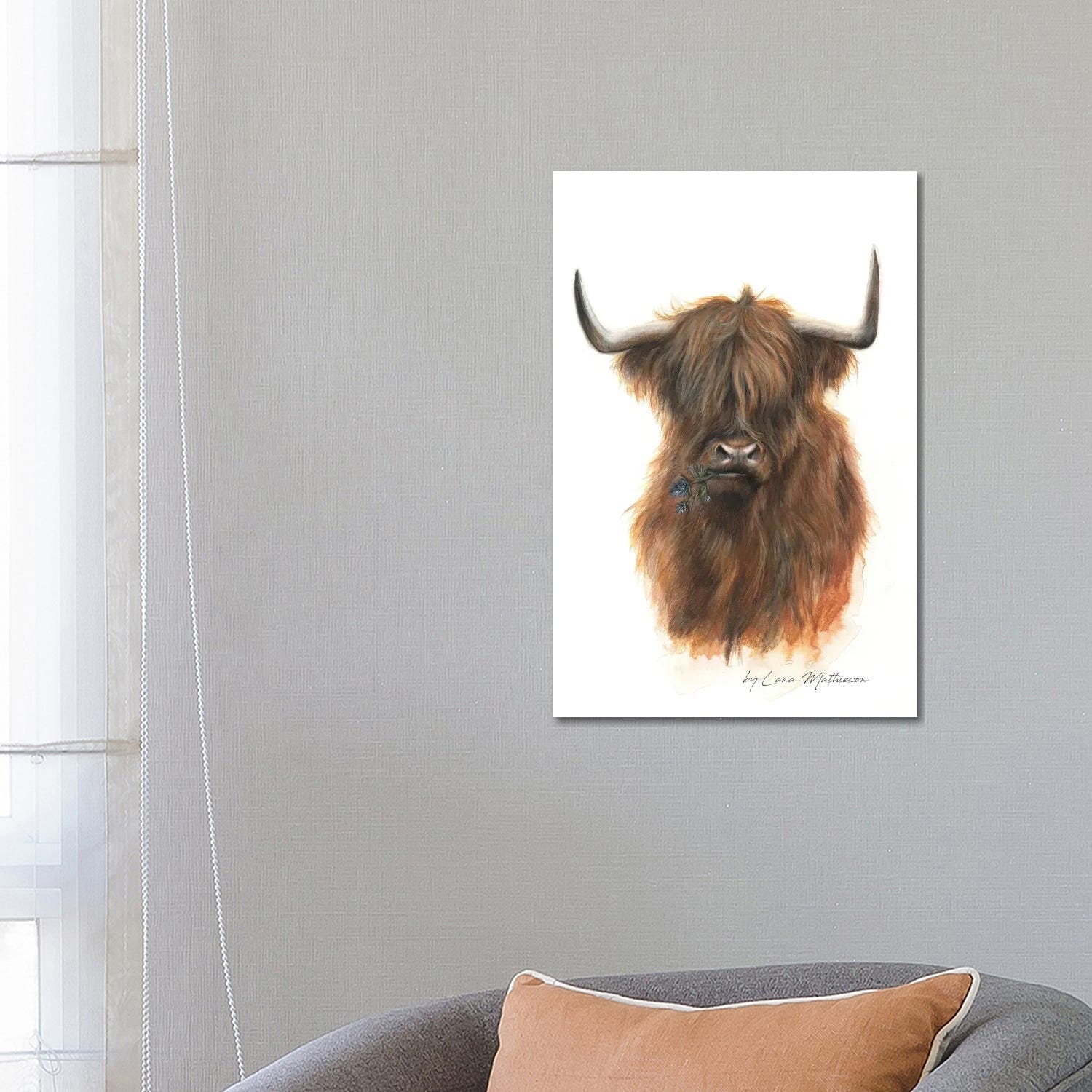 iCanvas "Highland Cow Among the Thistles" by BebesArts Canvas Print
