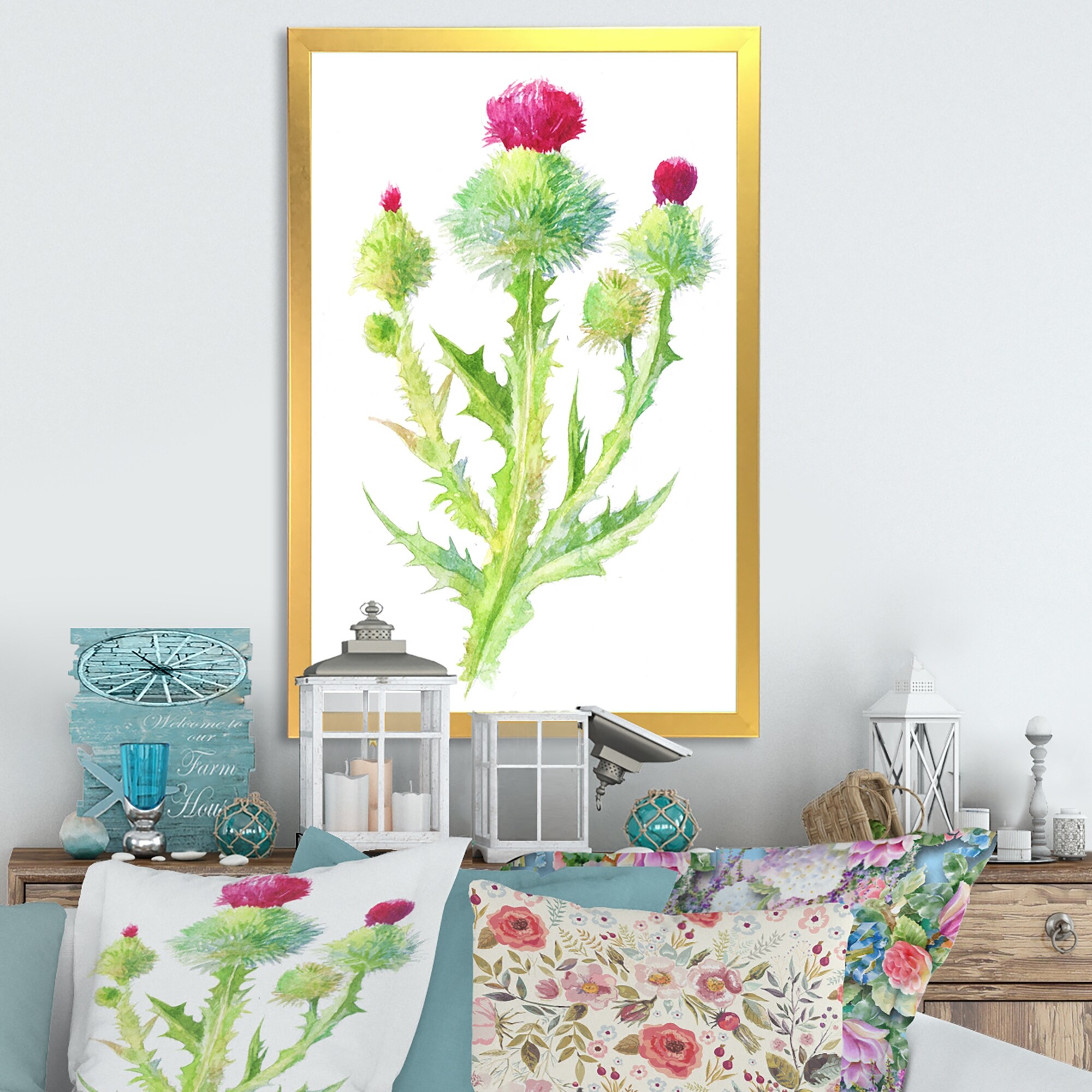 Designart "Green Vintage Thistle Flowers" Traditional Framed Wall Decor