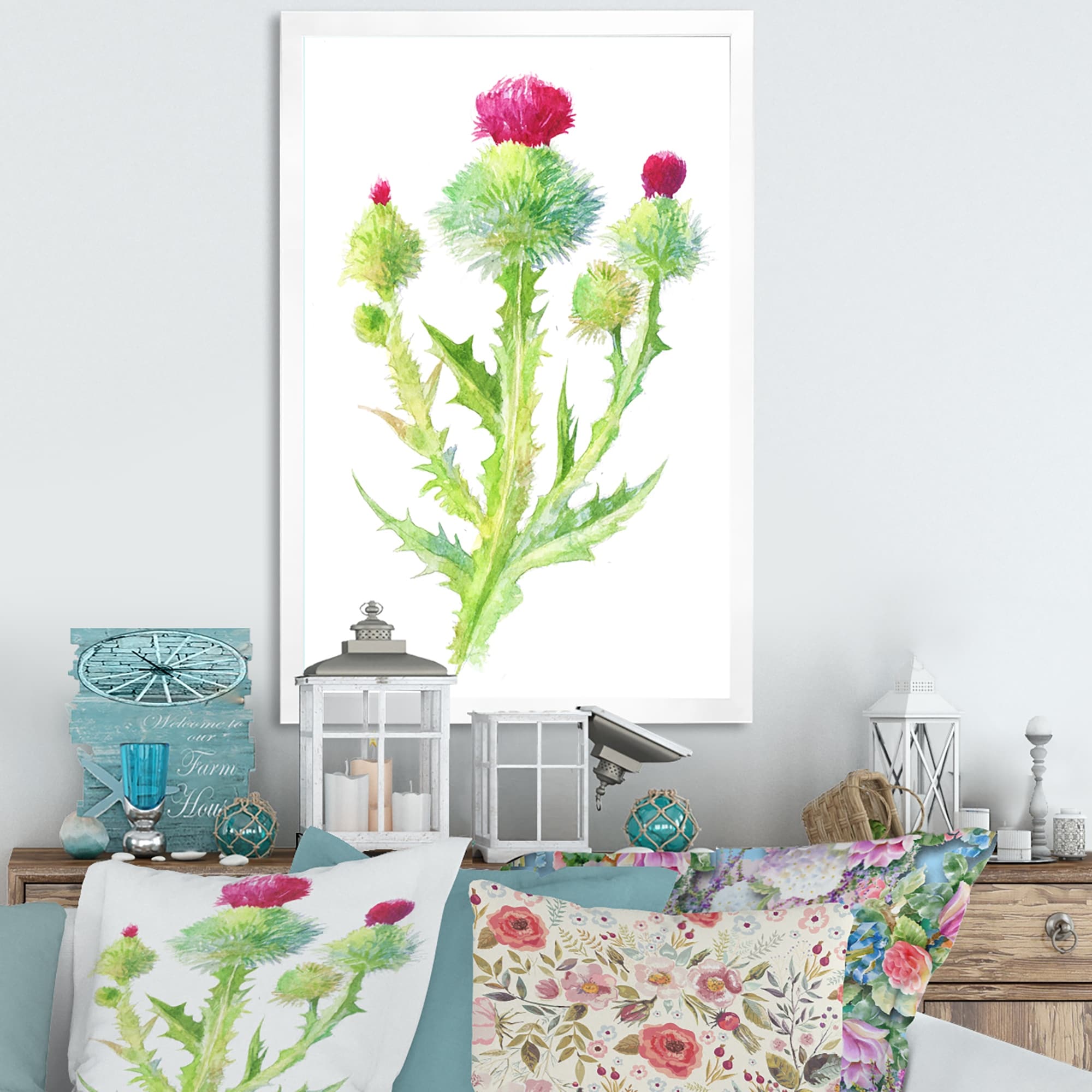 Designart "Pink Thistle Flowers on White" Traditional Framed Wall Decor