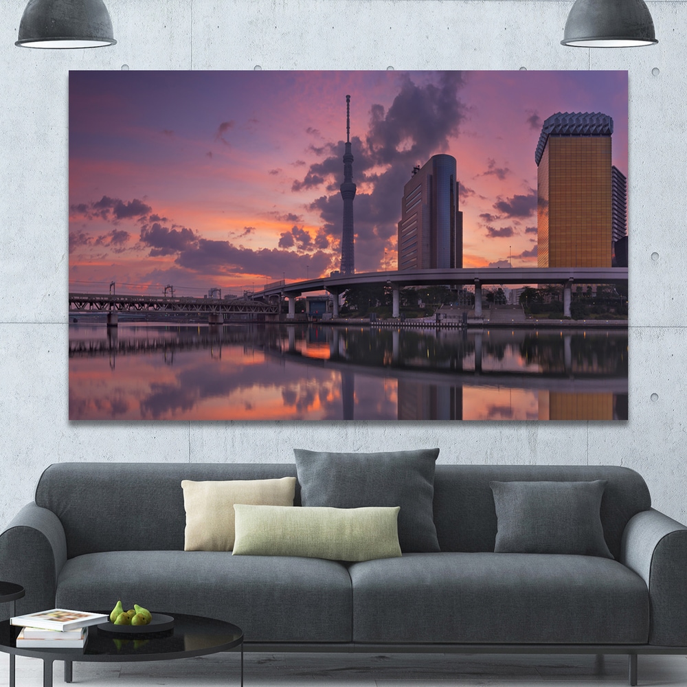 Designart "Tokyo Sky Tree and Sumida River" Landscape Wall Art on Canvas - Multi-color