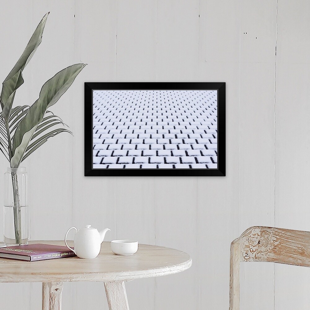 "River levee in snow, Tokyo, Japan." Black Framed Print