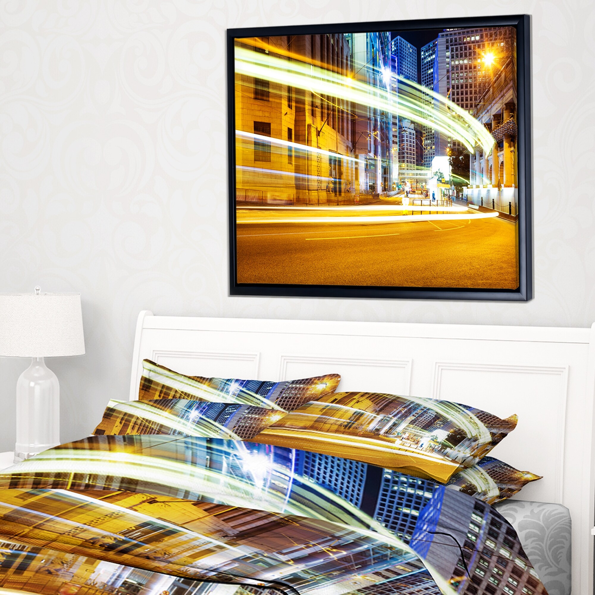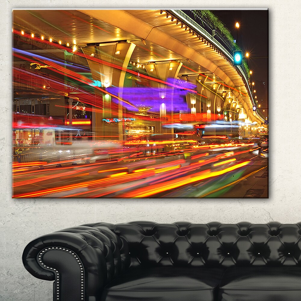Designart "Urban City Traffic Trails" Cityscape Digital Art Large Canvas Print