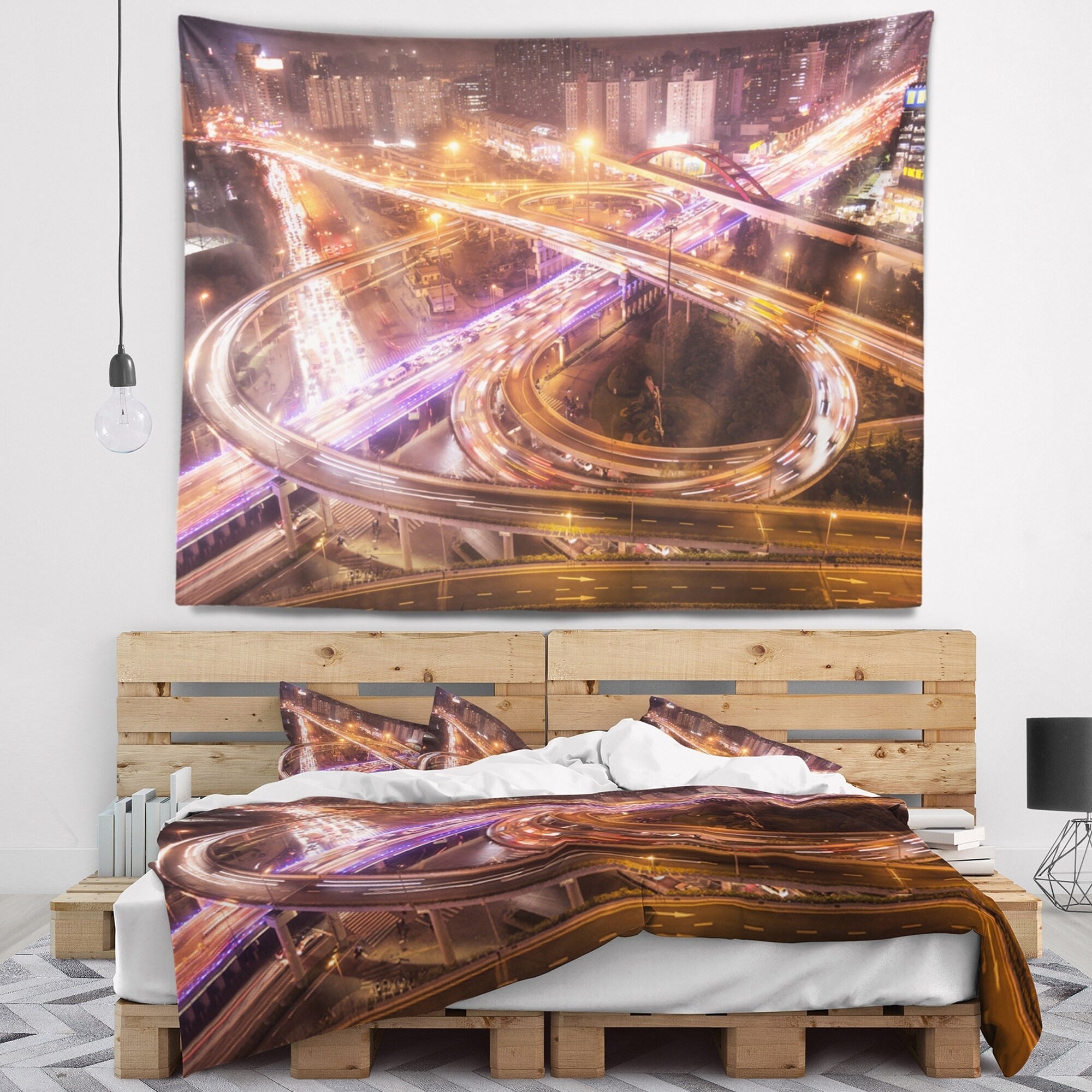 Designart 'Beautiful Shanghai Traffic' Wall Tapestry