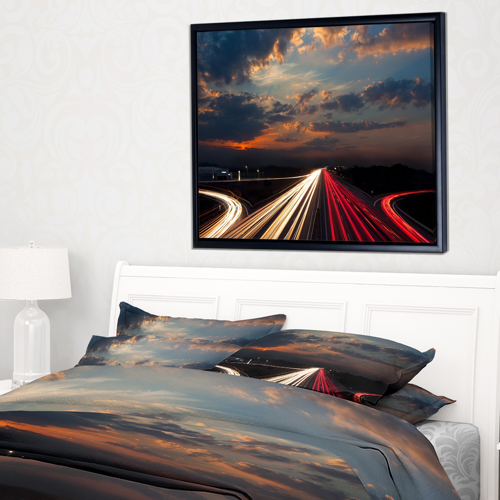 Designart "Long Exposure Traffic" Abstract Framed Canvas art print