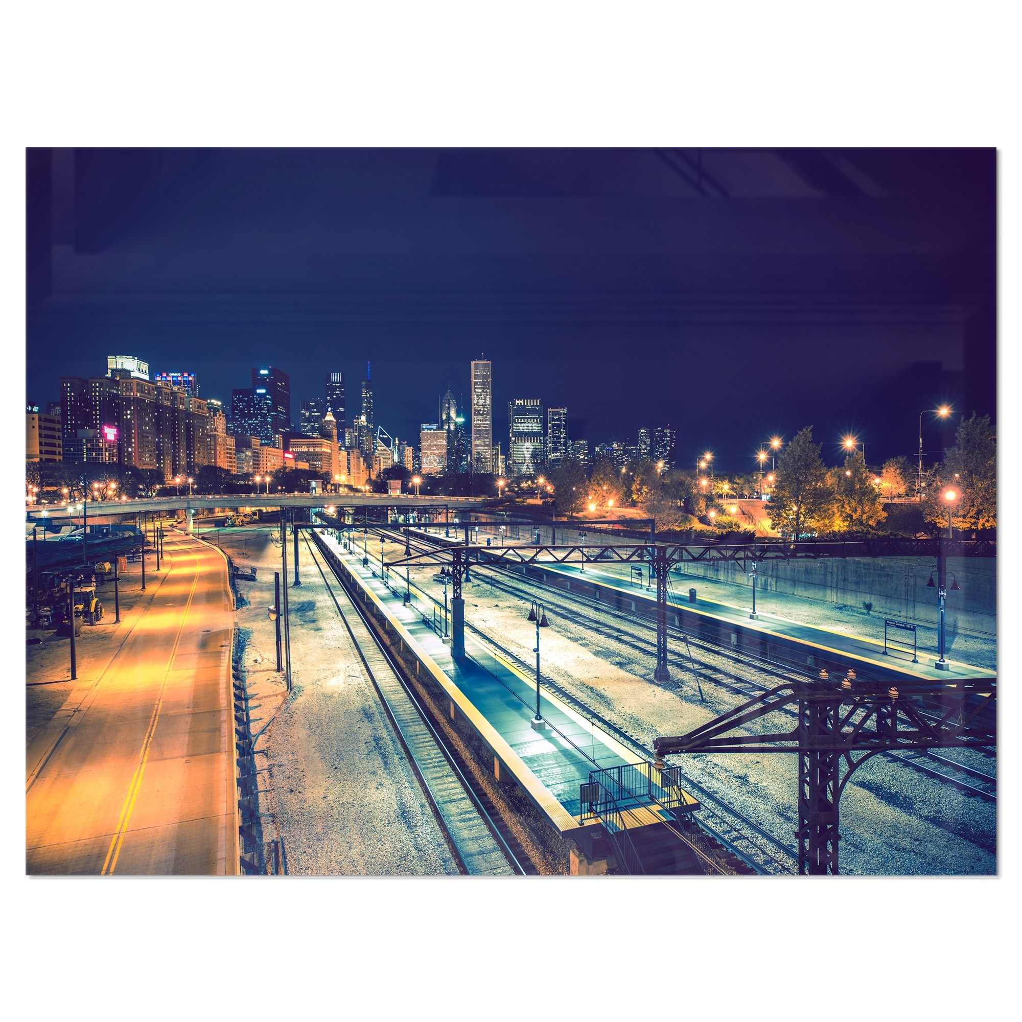 Welcome in Chicago Highway Traffic - Cityscape Glossy Metal Wall Art