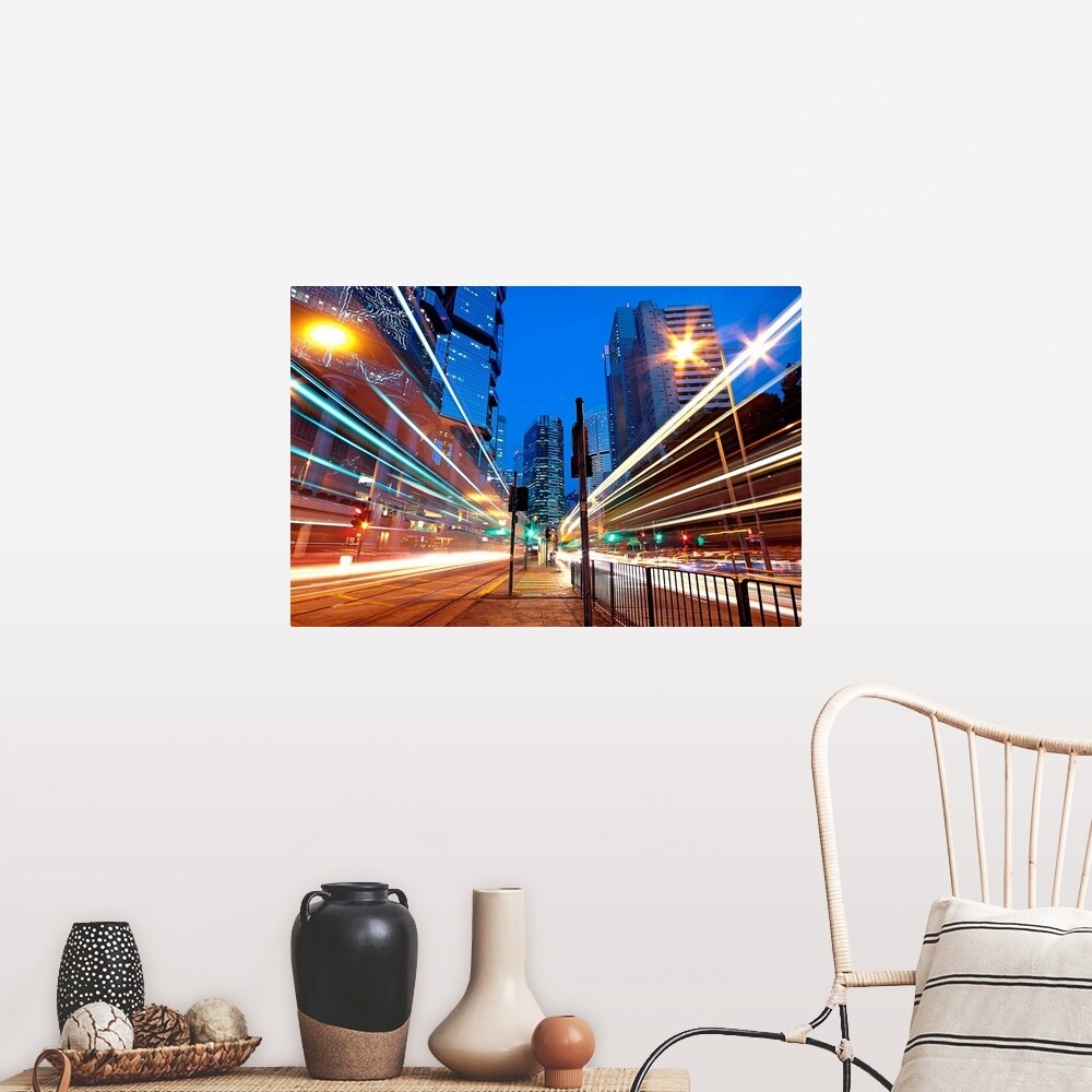 Designart 'Traffic In Hong Kong at Night' Cityscape Wall Tapestry