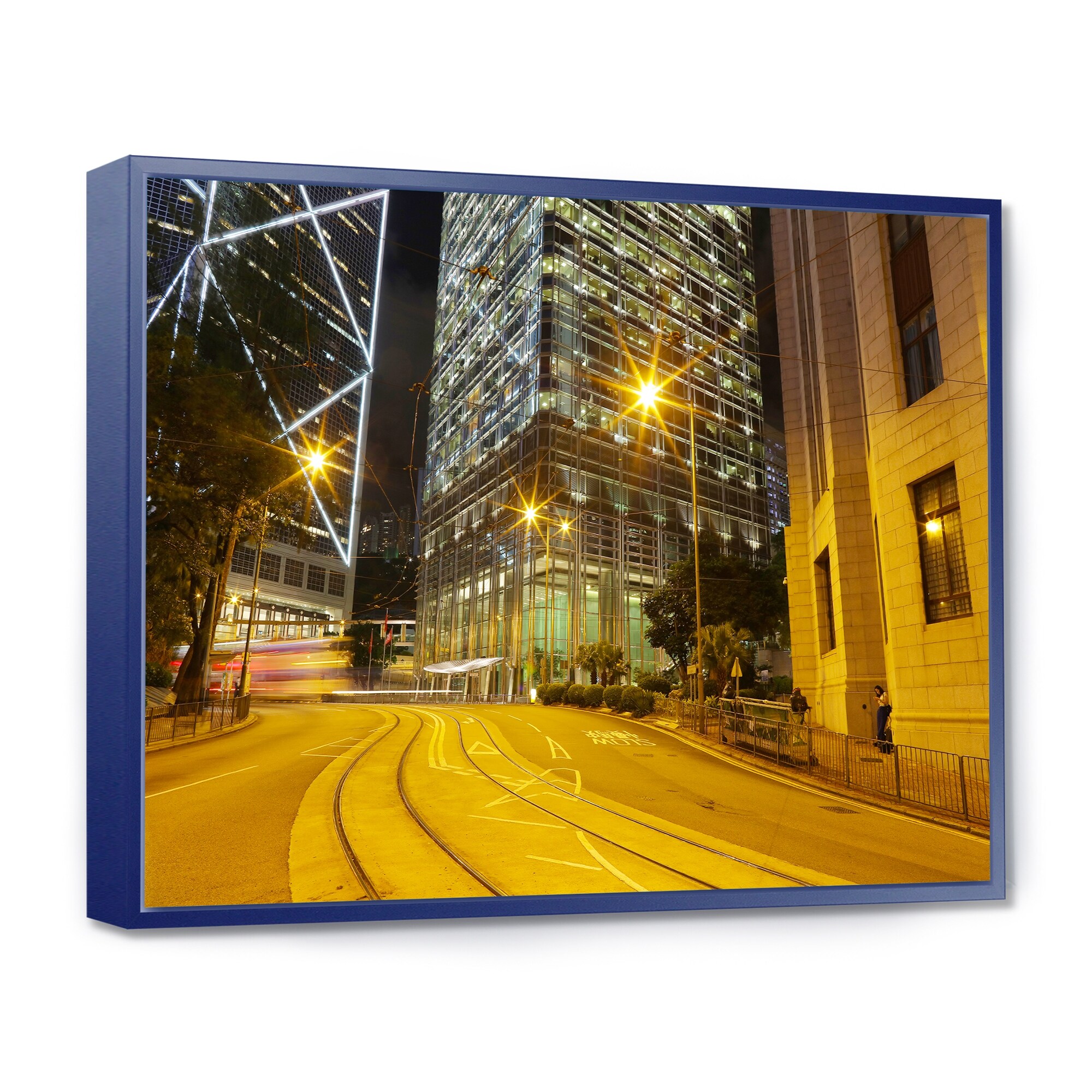 Traffic in Hong Kong at Night - Cityscape Canvas print - Blue