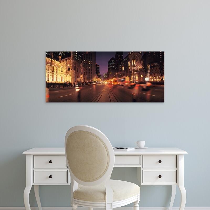 Easy Art Prints Panoramic Image 'Traffic on road at dusk, Michigan Avenue, Chicago, Cook County, Illinois' Canvas Art