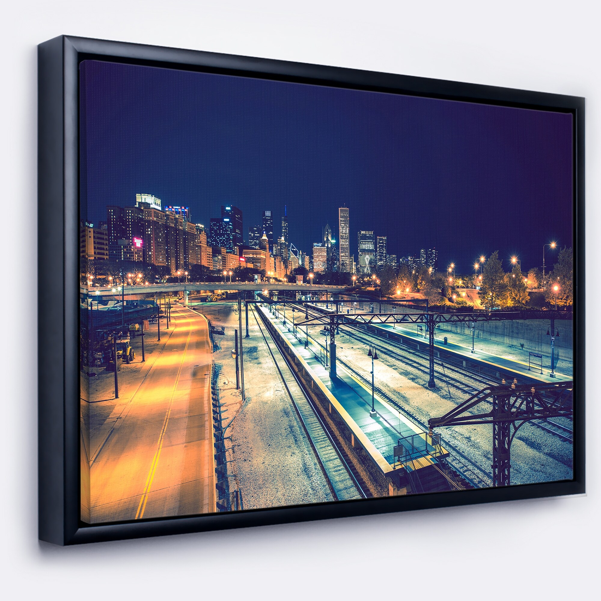 Designart "Busy Traffic and City at Night" Cityscape Framed Canvas Art Print
