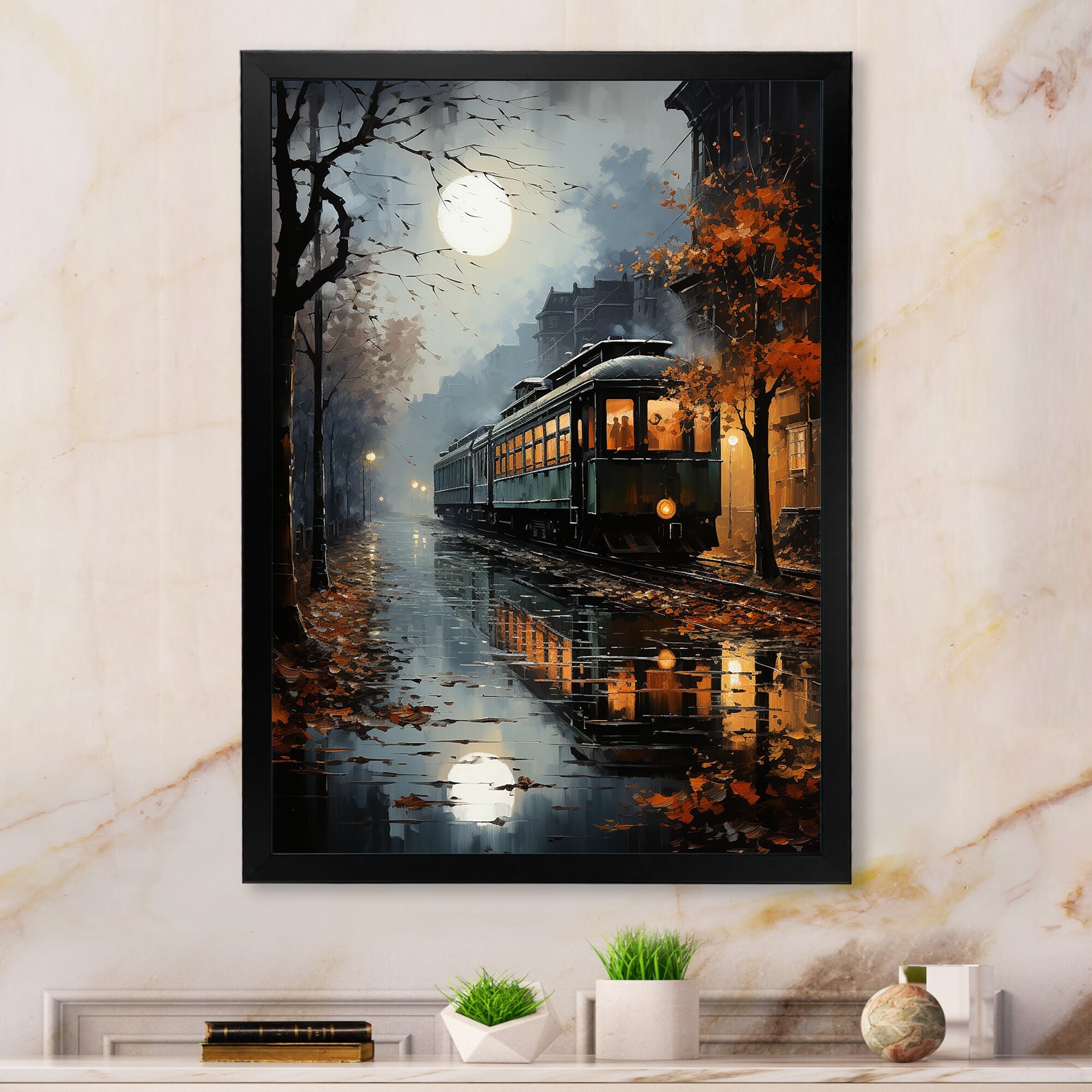 Designart "Train Misty Morning Pointillism II" Train Framed Wall Art Prints