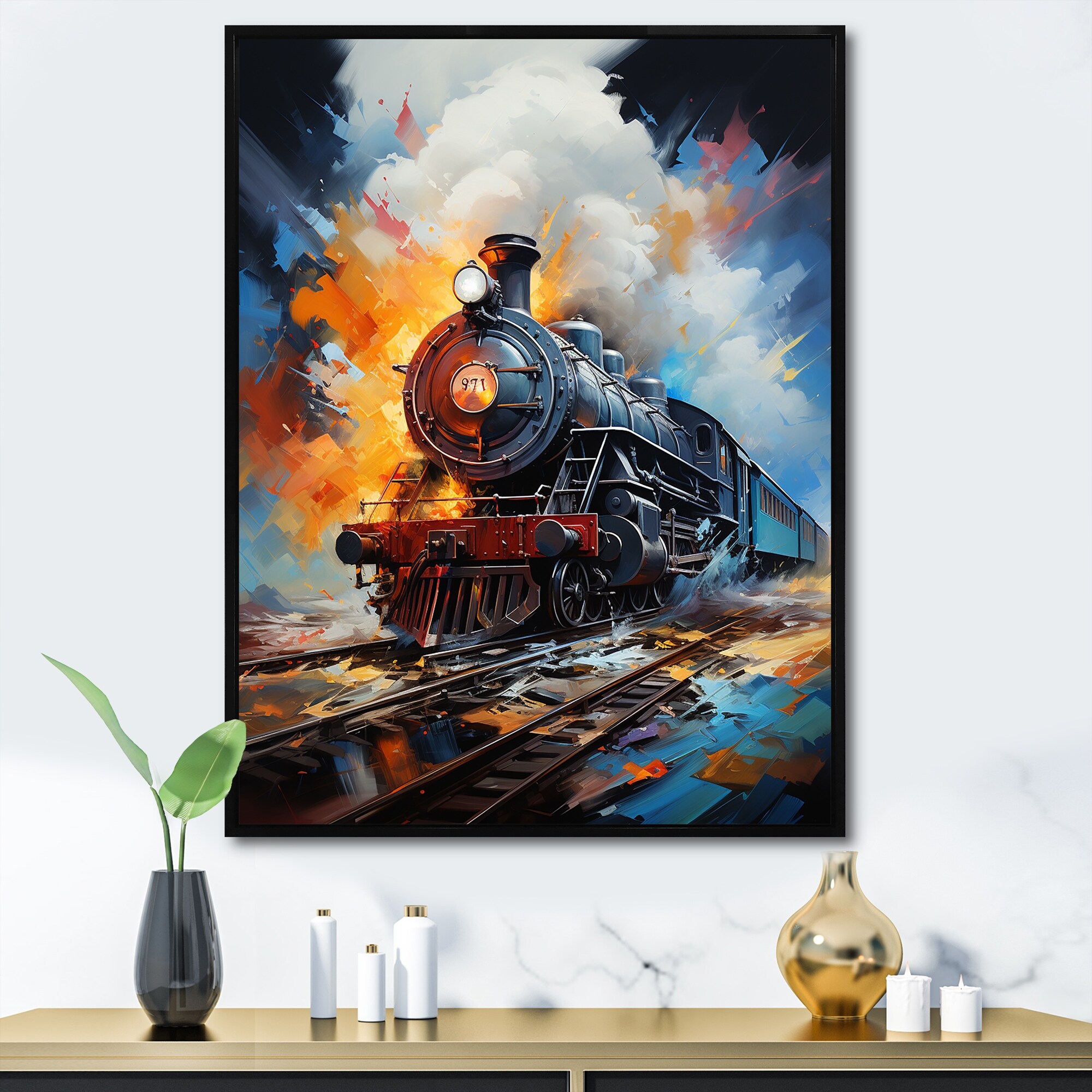 Designart "Abstract Train Fusion of Colors" Train Framed Canvas Wall Art