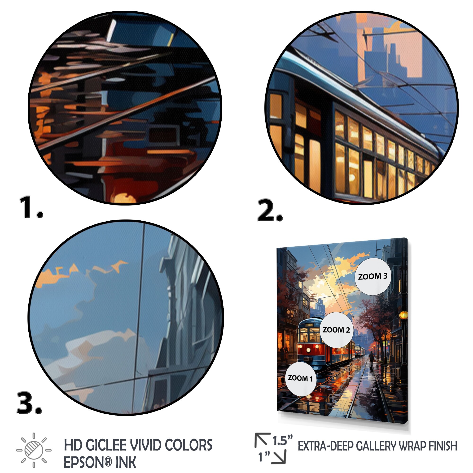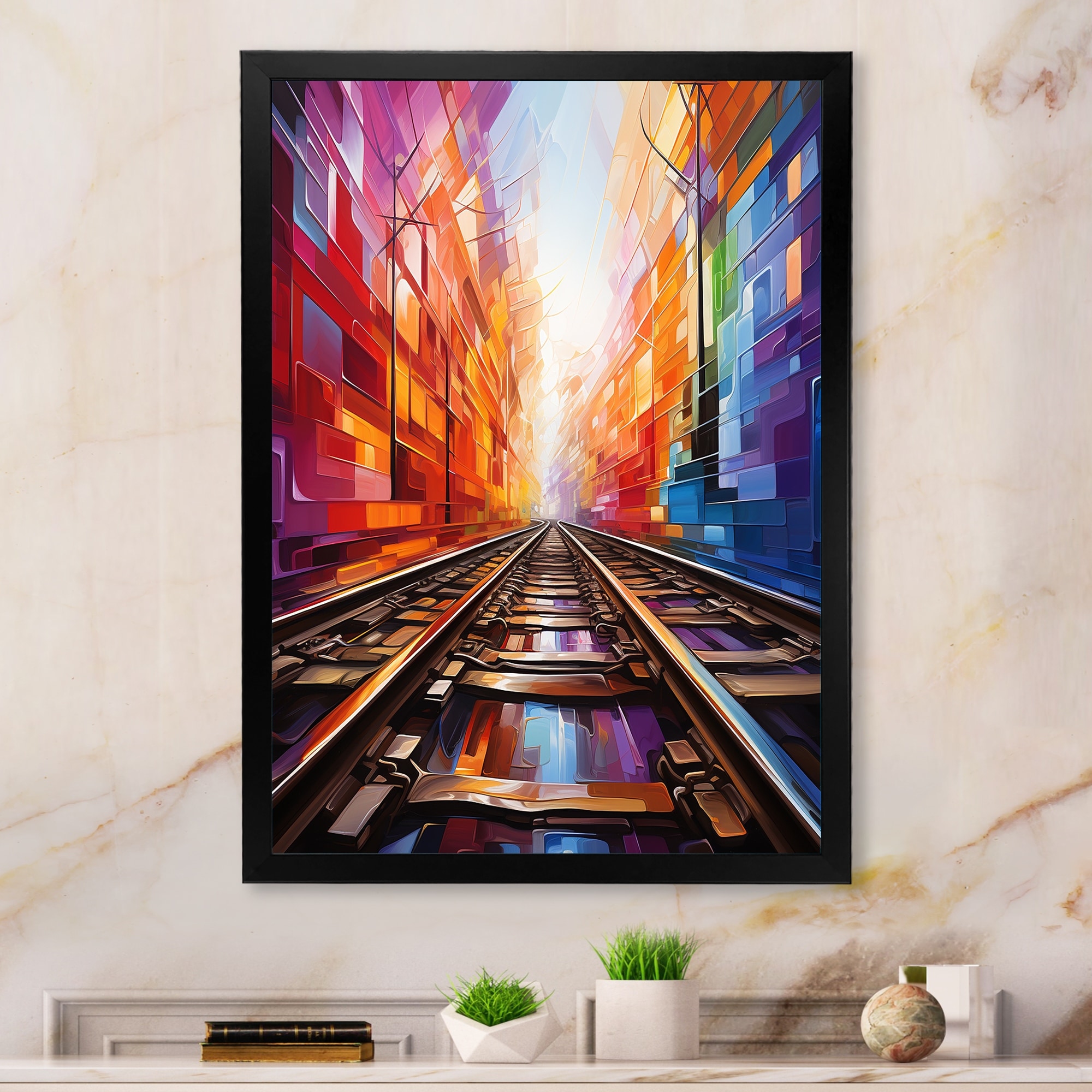 Designart "Train Colorful Tracks II" Train Framed Canvas Wall Art