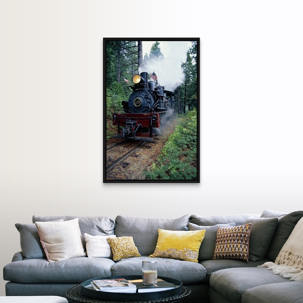 Designart "The Massive Steam Locomotive Belches Smoke I" Train Framed Canvas Art Print