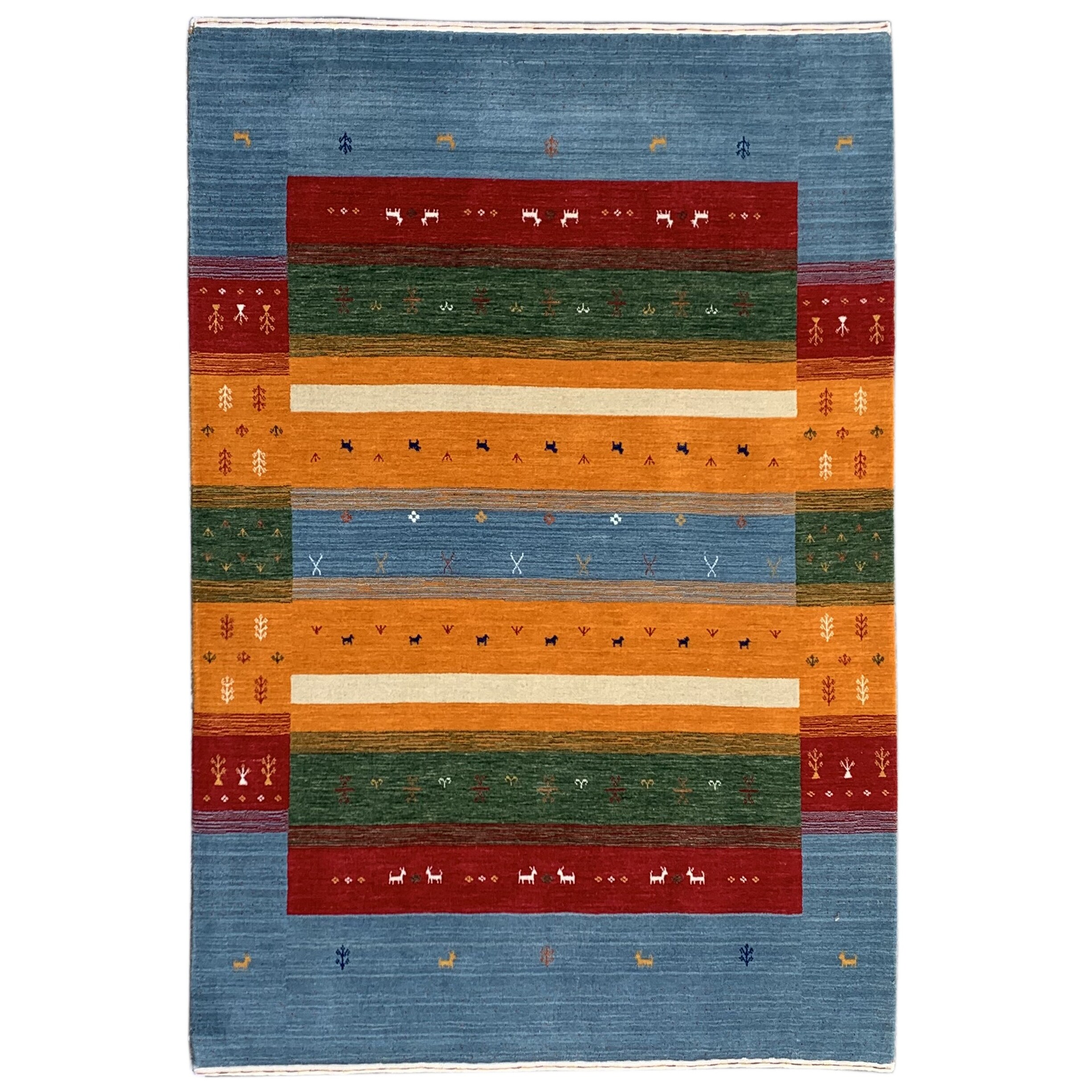 Handmade Wool SKY BLUE Transitional Modern Gabbeh Rug