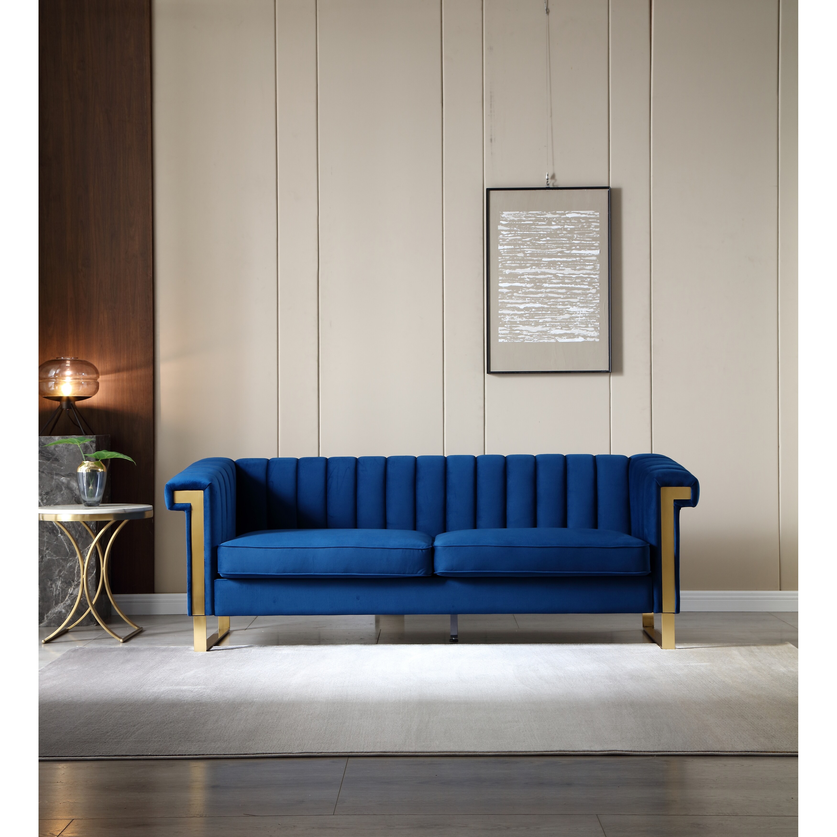 Modern Transitional Look 83.85" Transitional Sofa Velvet Removable Cushion 3 Seat