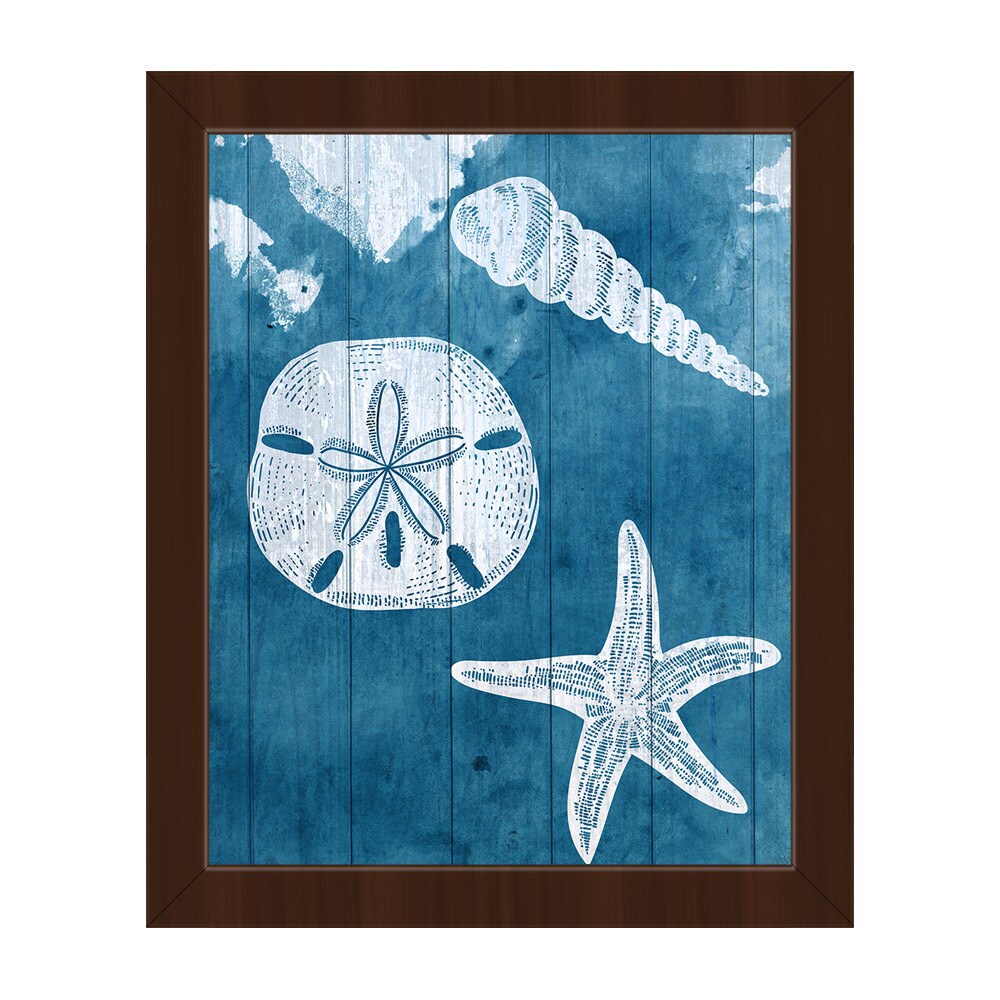 'Sea Treasures' Blue Framed Canvas Wall Art
