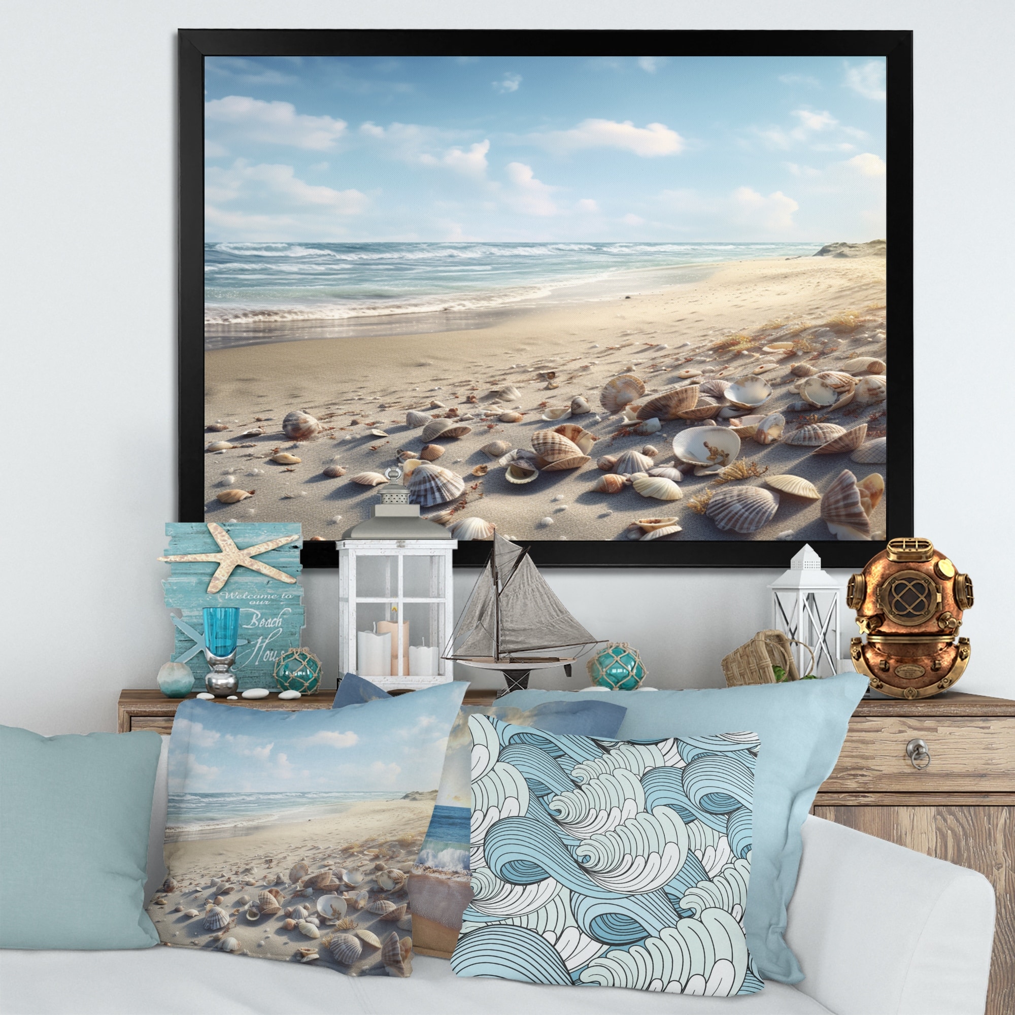 Designart "Seaside Seashell Treasures Ii" Modern Landscape Beach Framed Wall Decor
