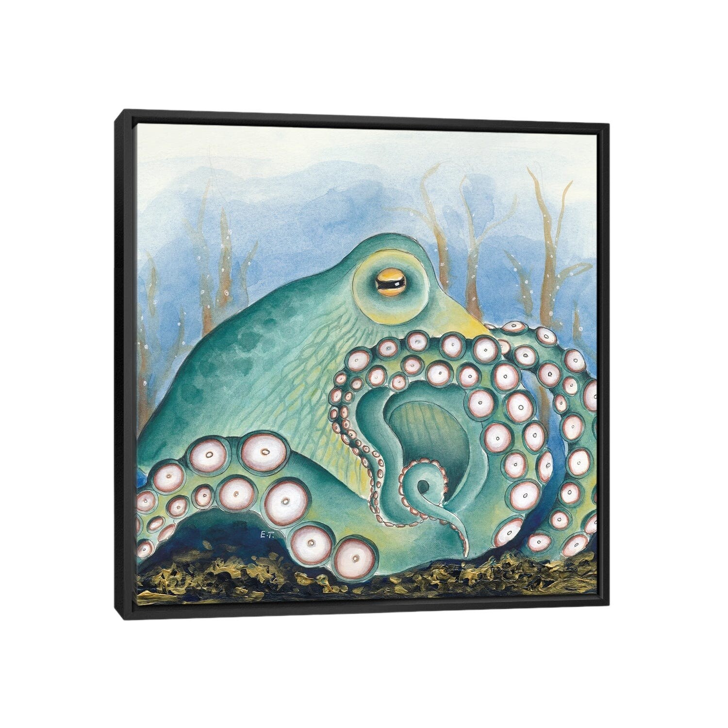 iCanvas "Green Octopus Treasure Watercolor Art" by Seven Sirens Studios Framed Canvas Print