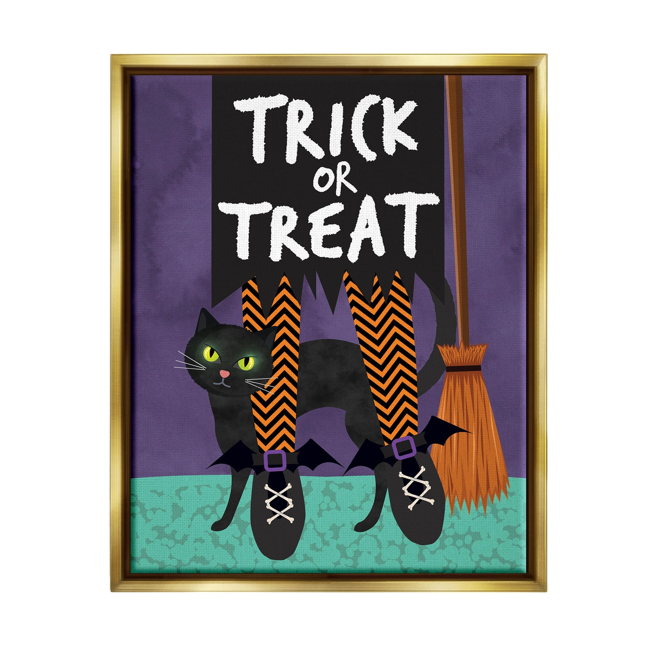 Stupell Trick or Treat Cat & Witch Framed Floater Canvas Wall Art, Design by Linda Birtel