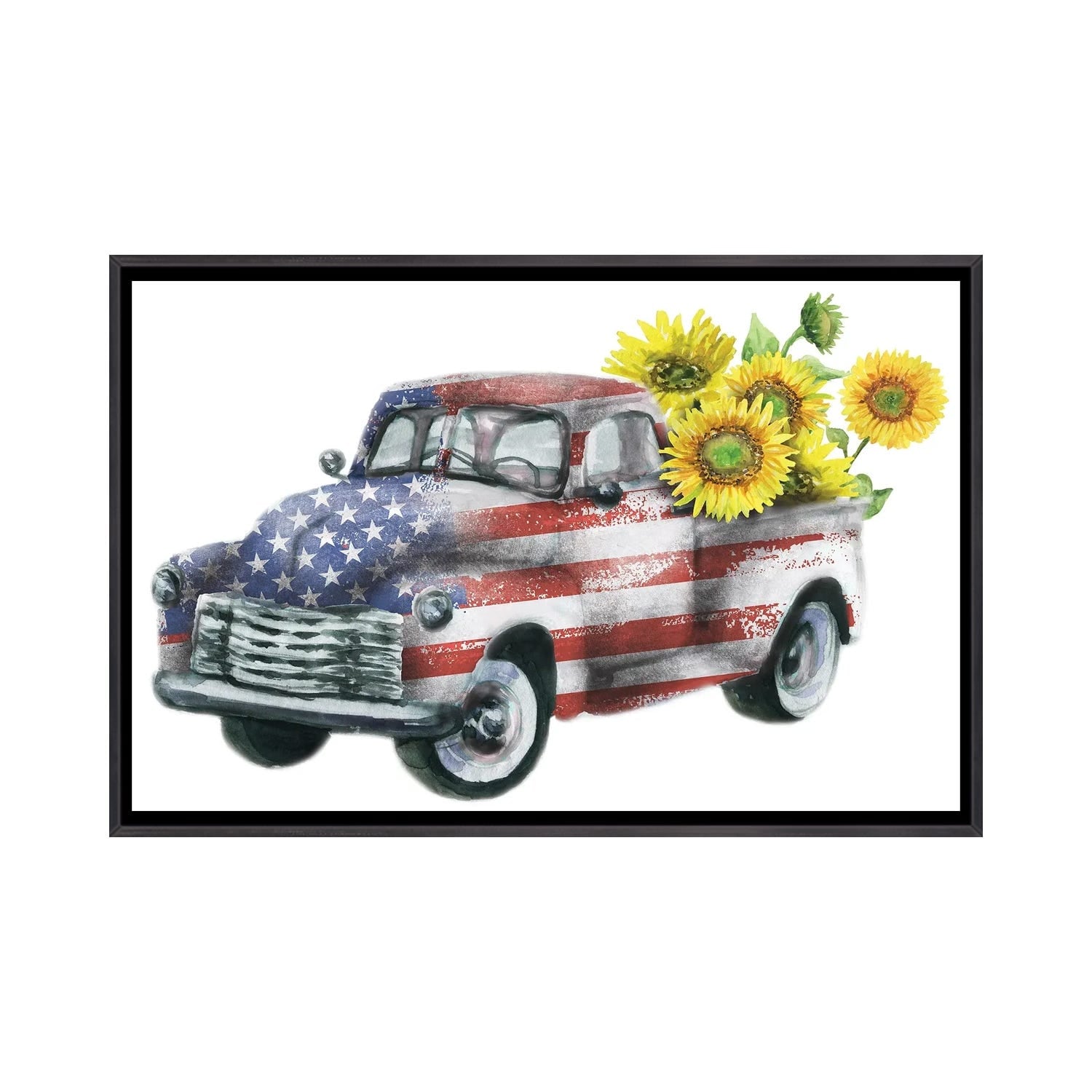 iCanvas "4Th Of July Truck With Sunflowers" by Ephrazy Graphics Framed
