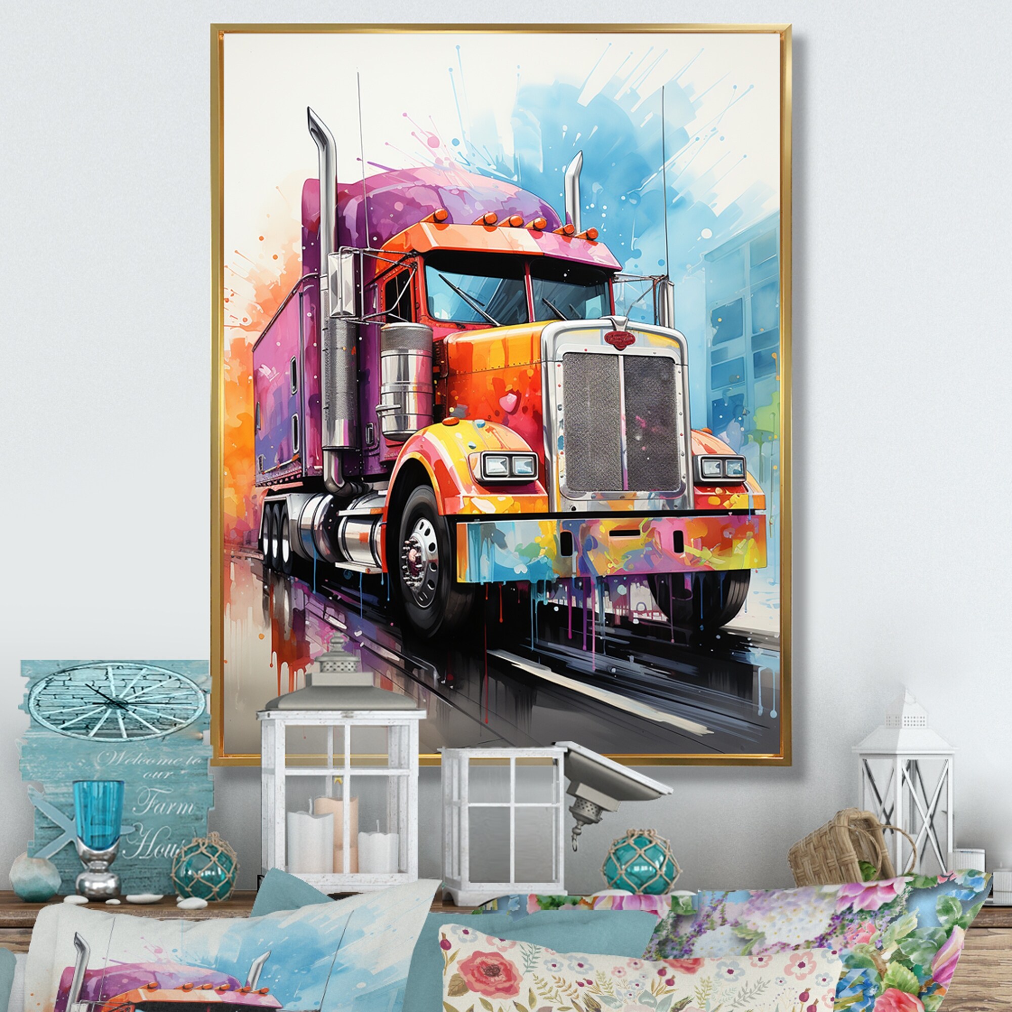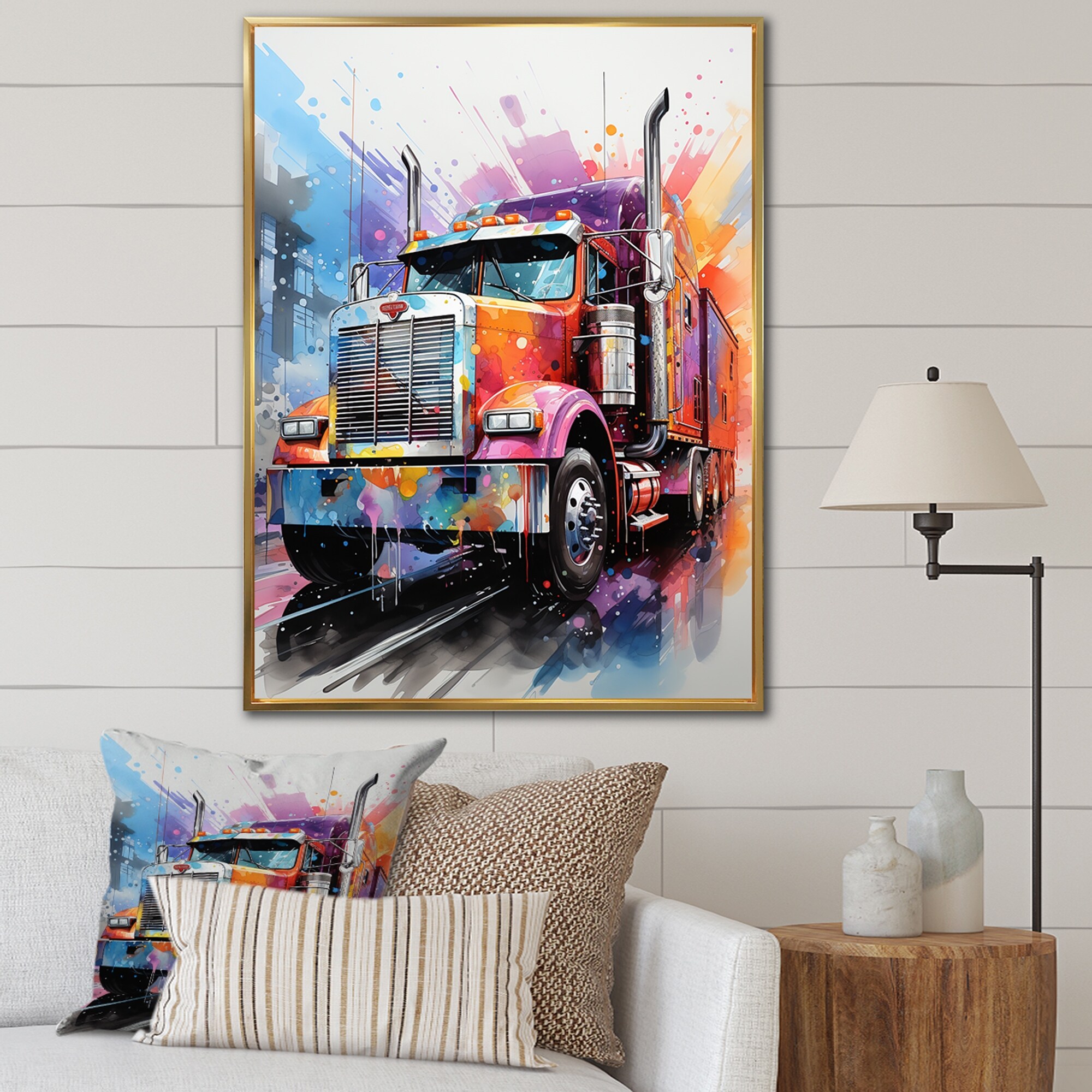Designart "Semi Truck Rebel Rumble II" Truck Framed Wall Art Living Room