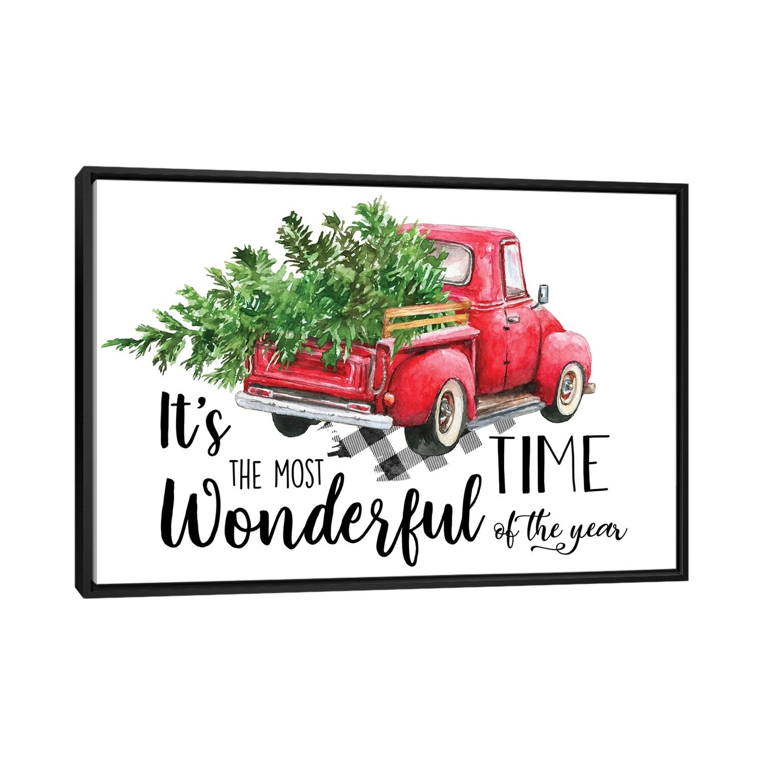 iCanvas "Red Plaid Christmas Truck" by Ephrazy Graphics Framed