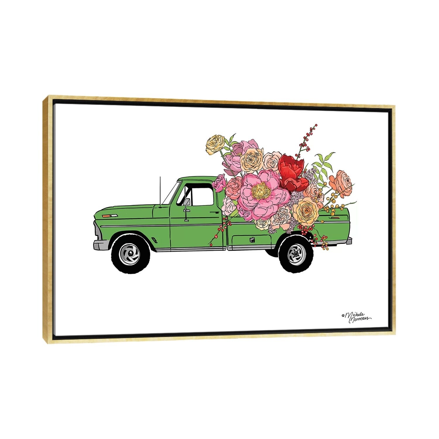 iCanvas "Floral Truck" by Michele Norman Framed