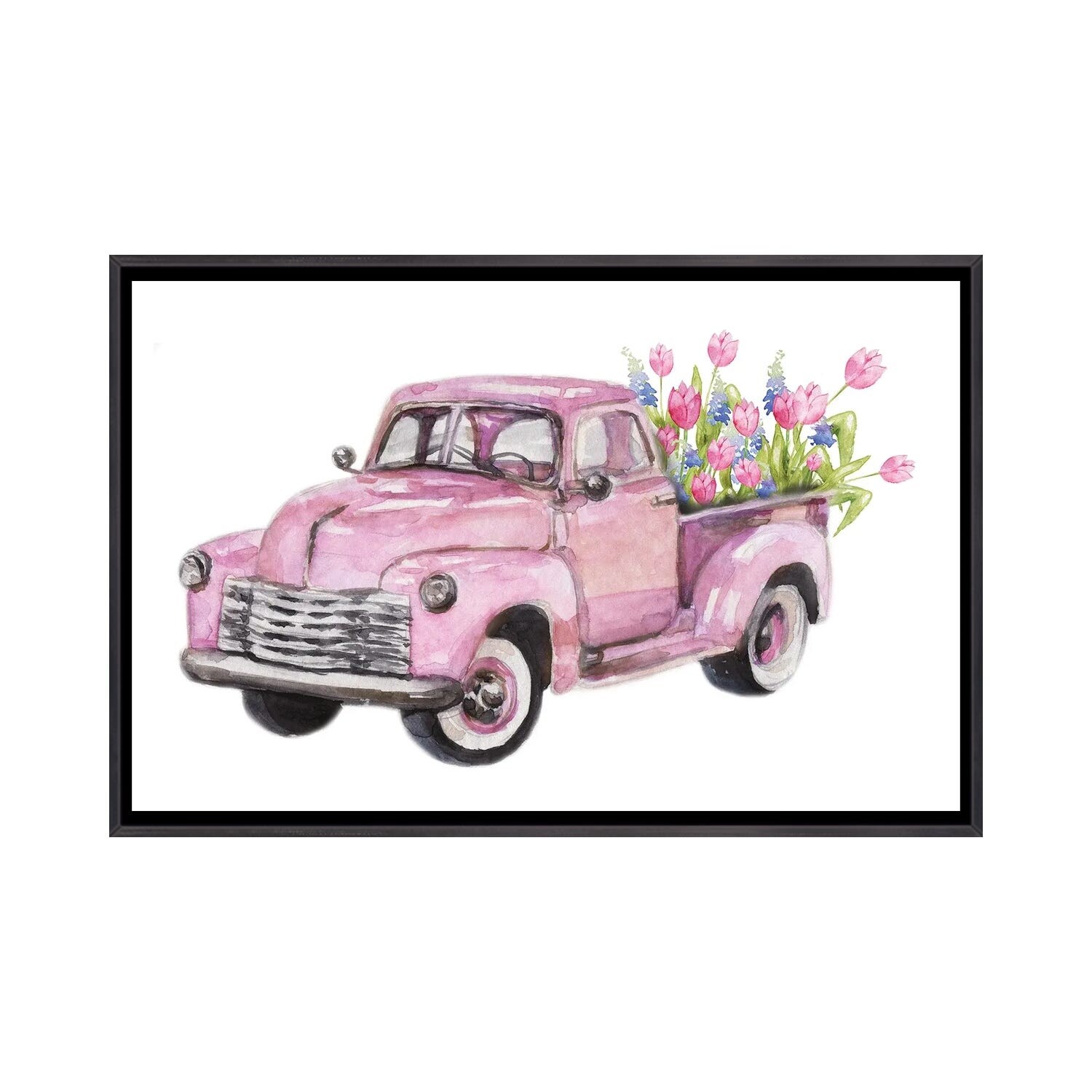 iCanvas "Spring Pink Flower Truck" by Ephrazy Graphics Framed